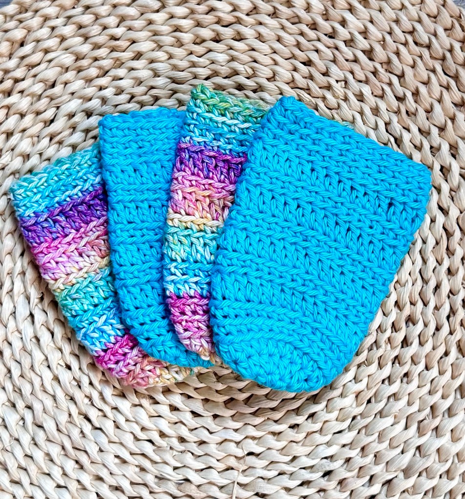 By working in the back loops only, it creates a great texture. You’ll get 3-4 cozies from each skein of I Love This Cotton yarn, so very economical! I’ve included the pattern below along with a link to a free PDF if you’d like to print it.
