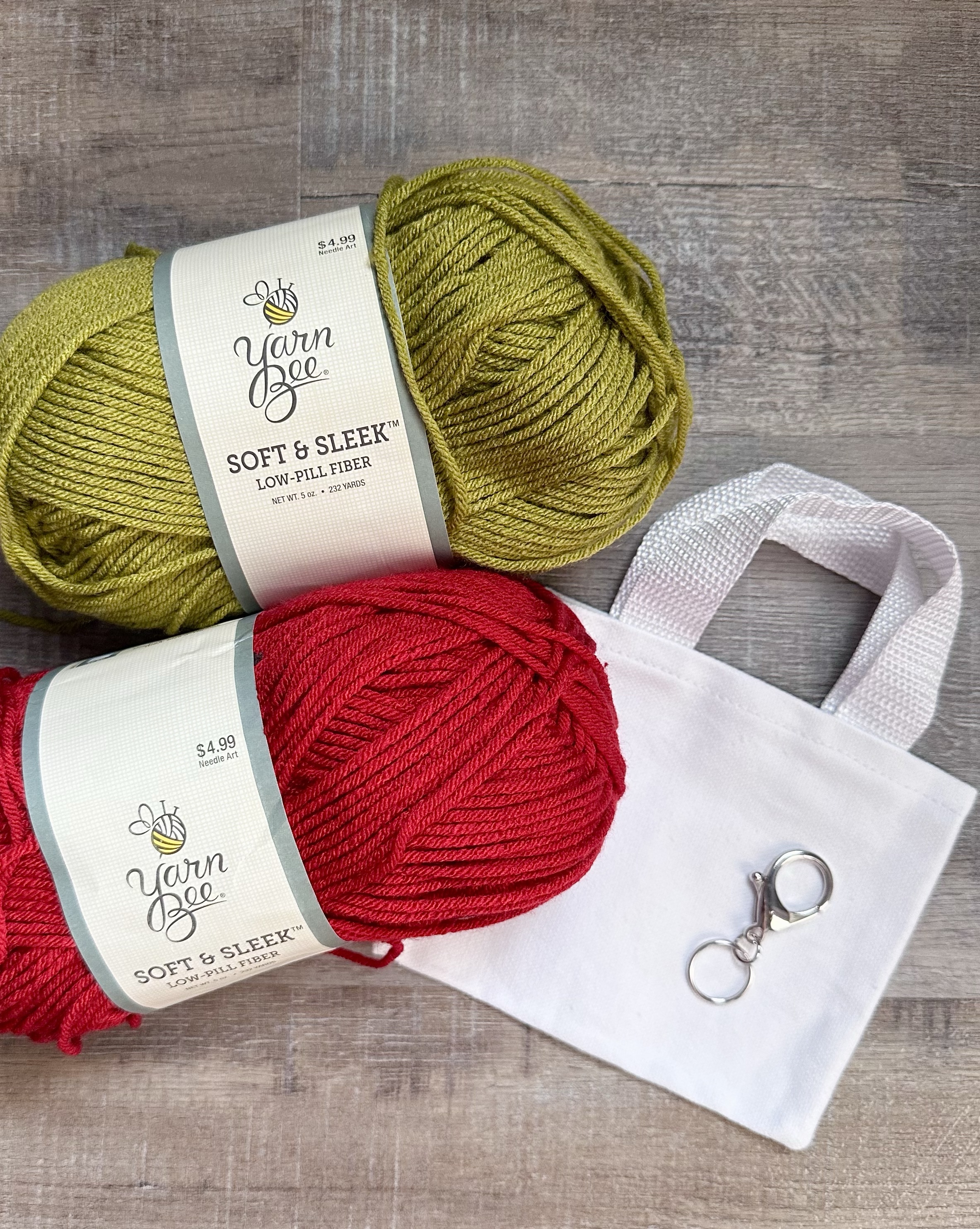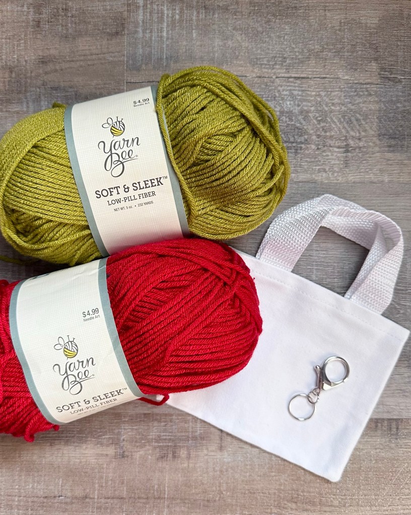 Worsted Weight Yarn – I used Yarn Bee Soft & Sleek Yarn in Red and Green Apple