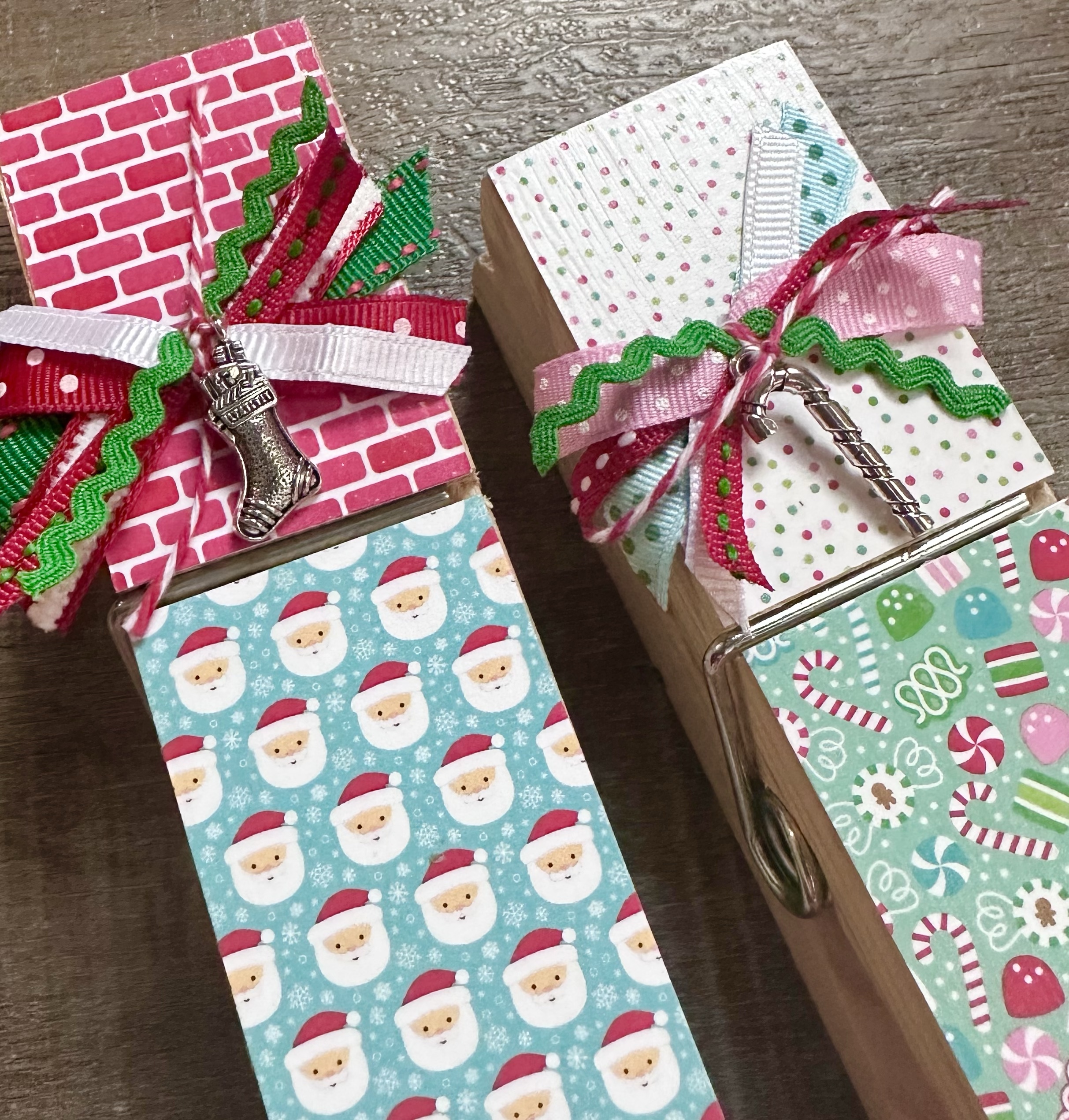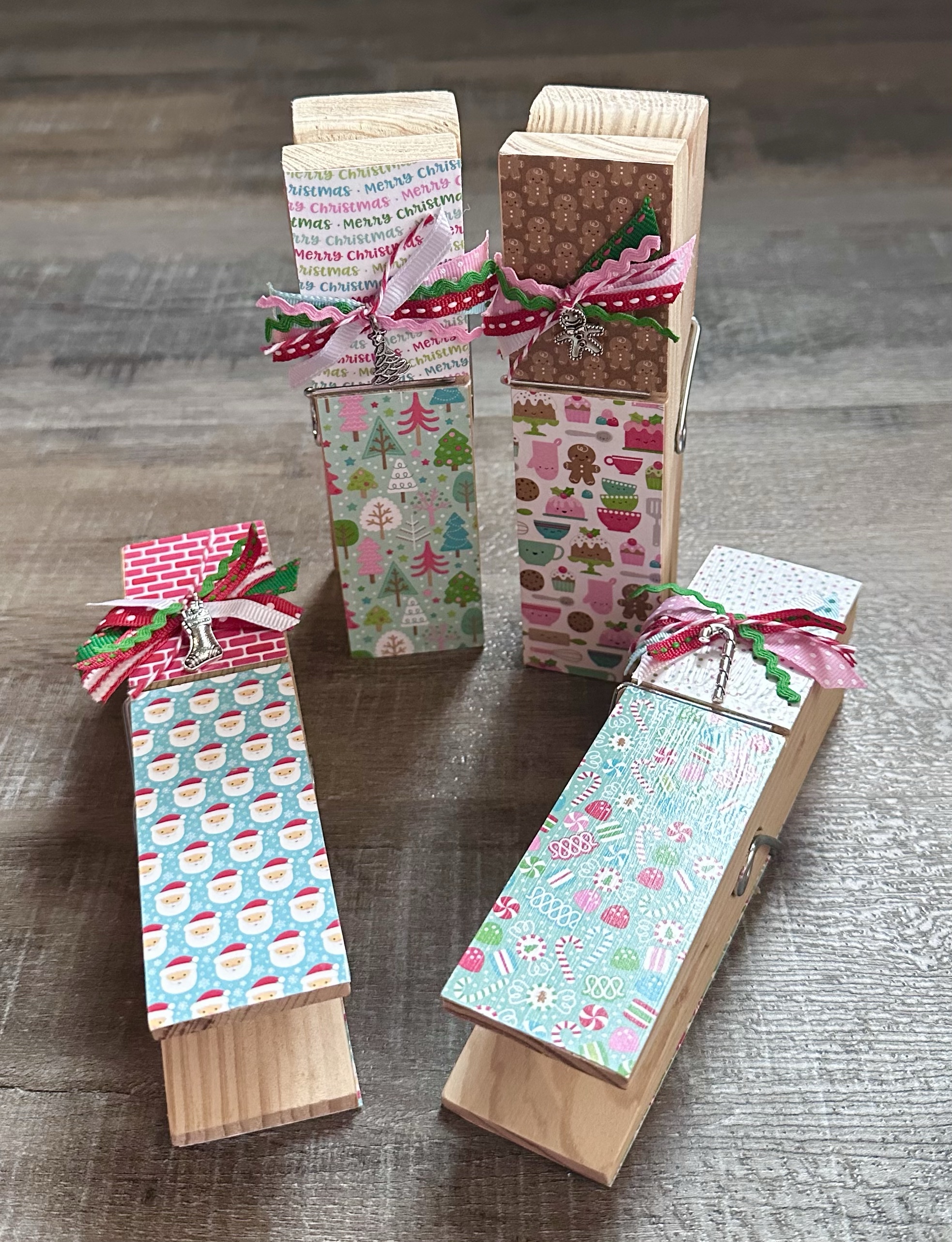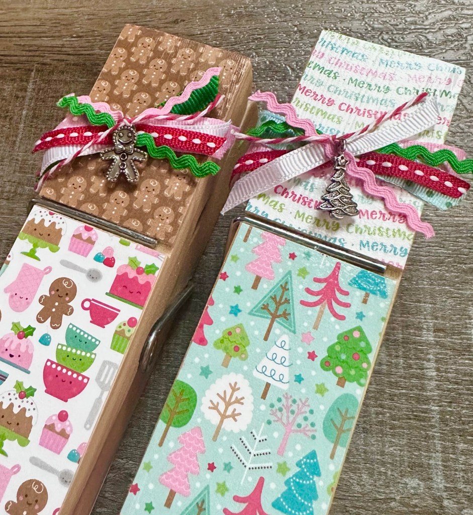 I went ahead and added the paper to both sides of the clothespin so it would be cute no matter which side you see. You can leave it just like that or add embellishments to dress it up. Ribbons, buttons, charms, gems, or anything else you can think of to make these giant clothespins even more fun!