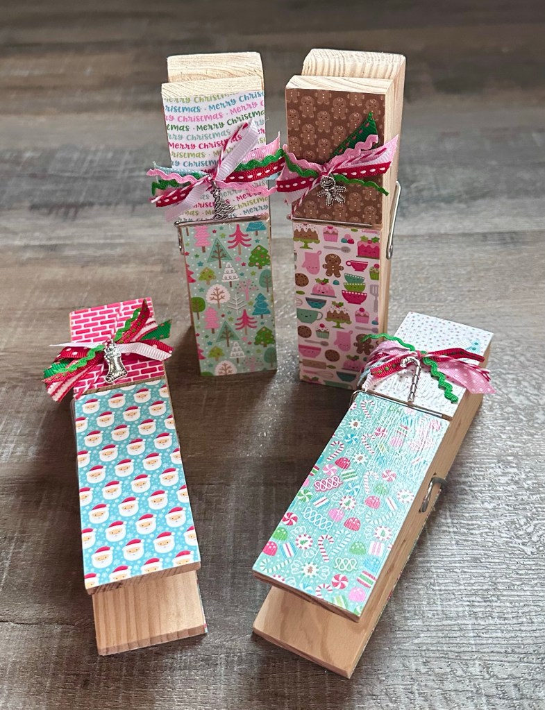 Have you ever seen these giant wood clothespins? They measure about 6 inches tall by about 1.25 inches wide. I was looking through my craft room and stumbled across them…I forgot I had them! Maybe I need to do some cleaning and organizing?? 🤷🏼♀️ Anyway, these clothespins are similar to what I discovered in my craft room.