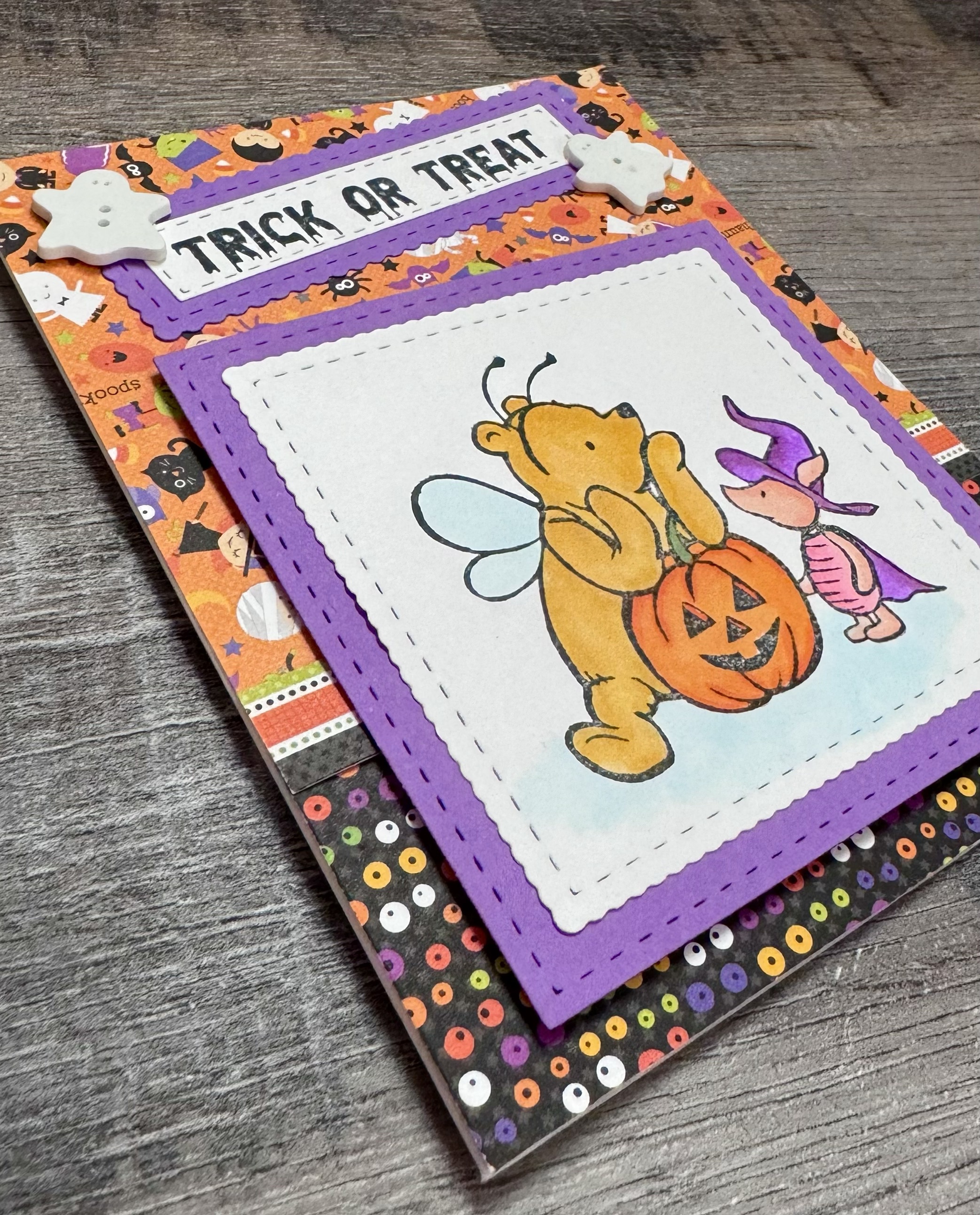 This adorable stamp set is called Winnie the Pooh: Winnie the Boo & Piglet from Unity Stamp Company. I know I use stamps from Unity a lot πŸ˜‰ – but how can I not?!?! They have the best images and the quality is amazing! You really should check them out. 😊