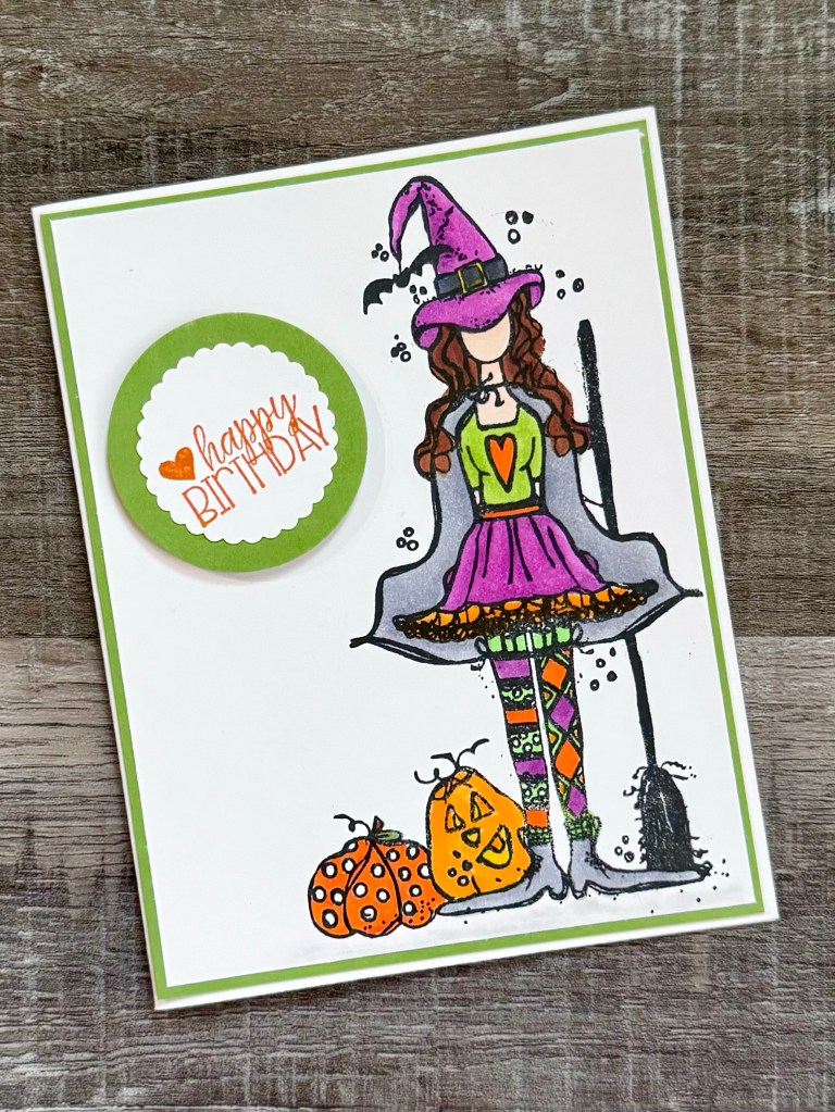 Hazel Girl from Unity Stamp Company is all dressed up and ready for Trick or Treating. She also makes a cute birthday card! 🎃