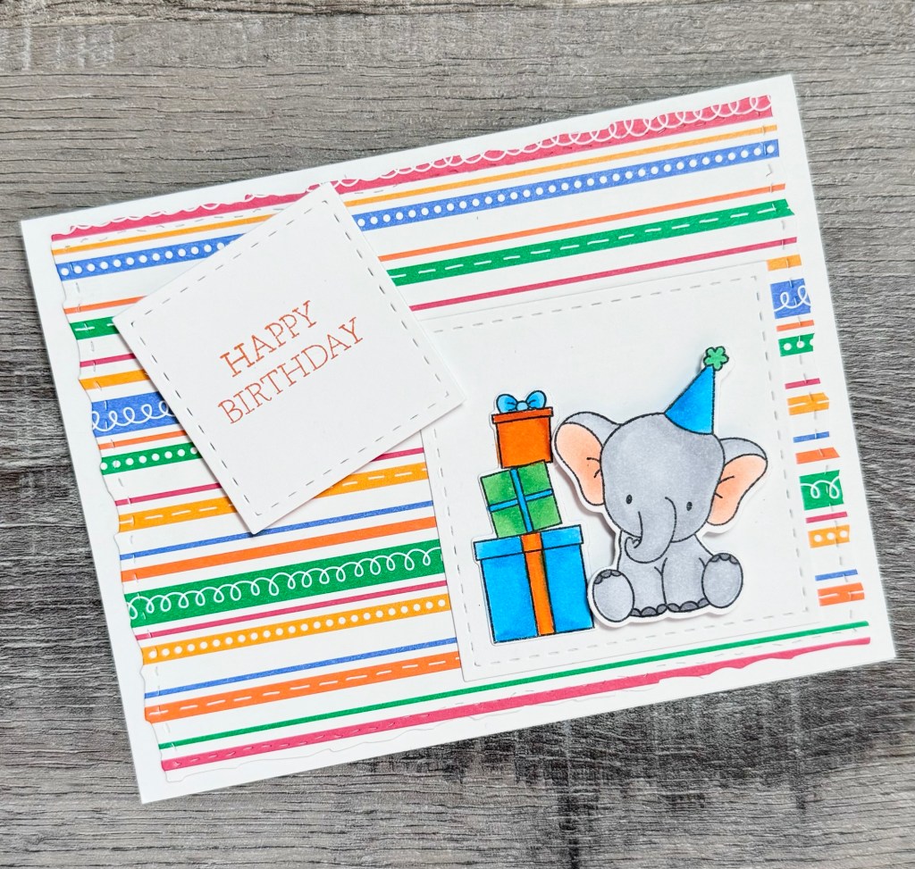 I have a few cards below that I hope will inspire you when making cards for the little ones in your life. They are all the same basic layout, but look so different from each other. They all come together quickly and are sure to bring smiles. 🙂