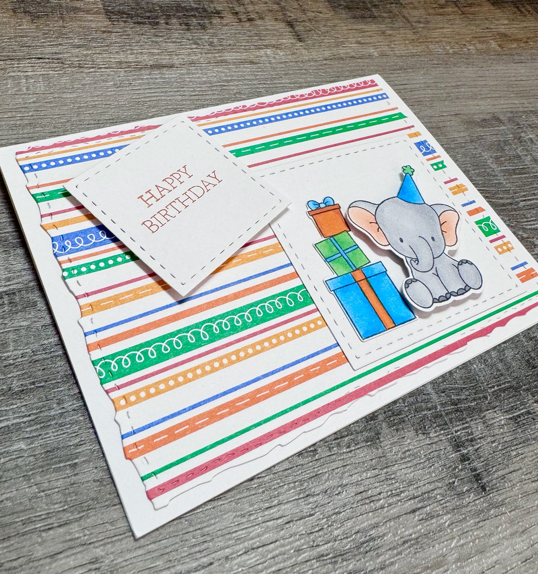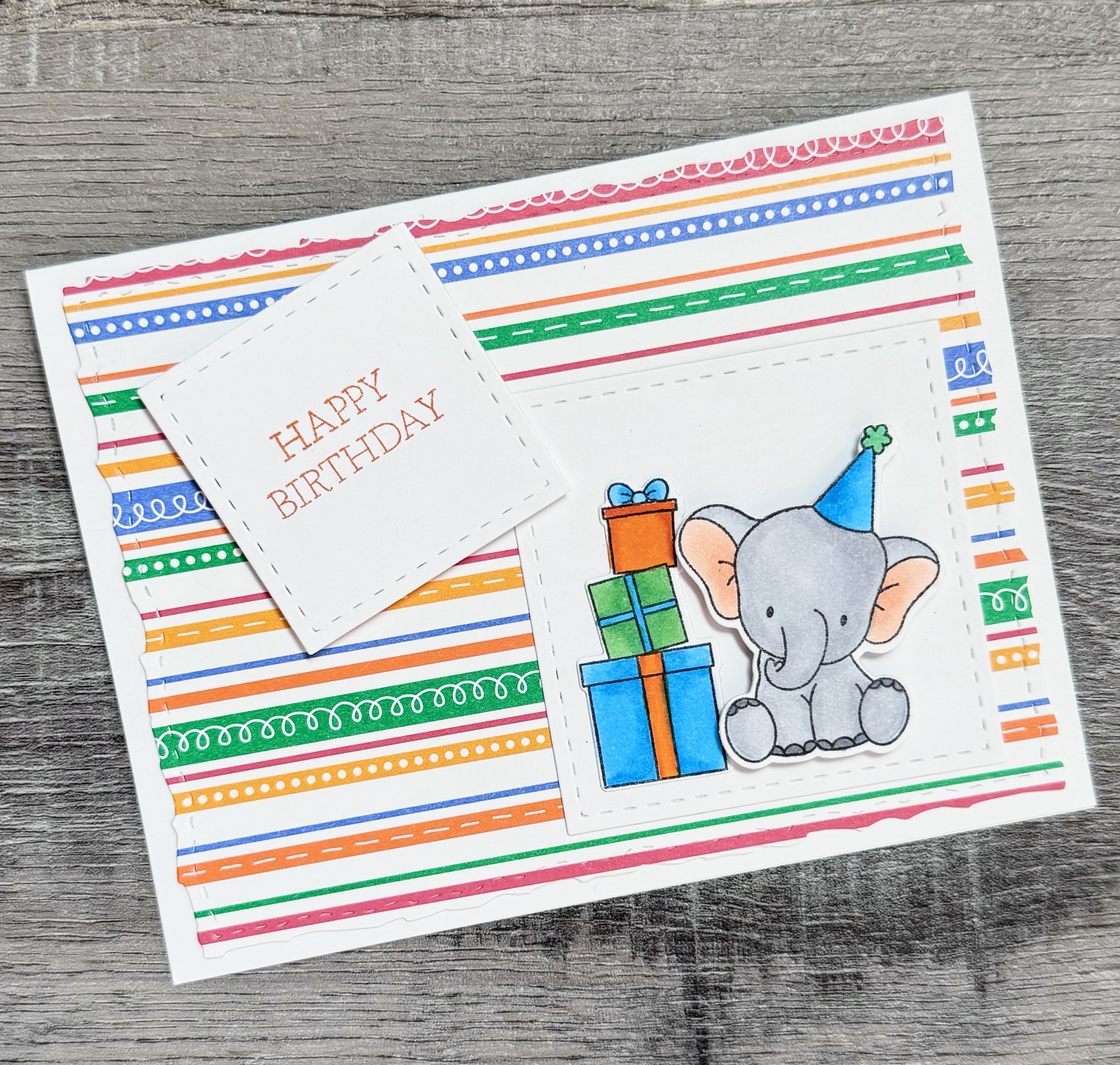 I have a few cards below that I hope will inspire you when making cards for the little ones in your life. They are all the same basic layout, but look so different from each other. They all come together quickly and are sure to bring smiles. 🙂