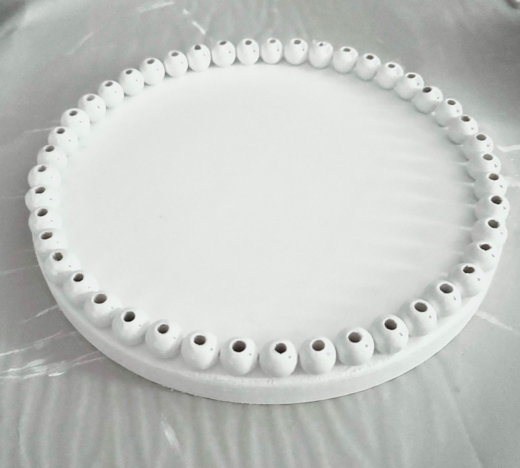 Once the adhesive has completely dried, turn it over and glue on the 4 ball knobs to the bottom for feet on the riser.