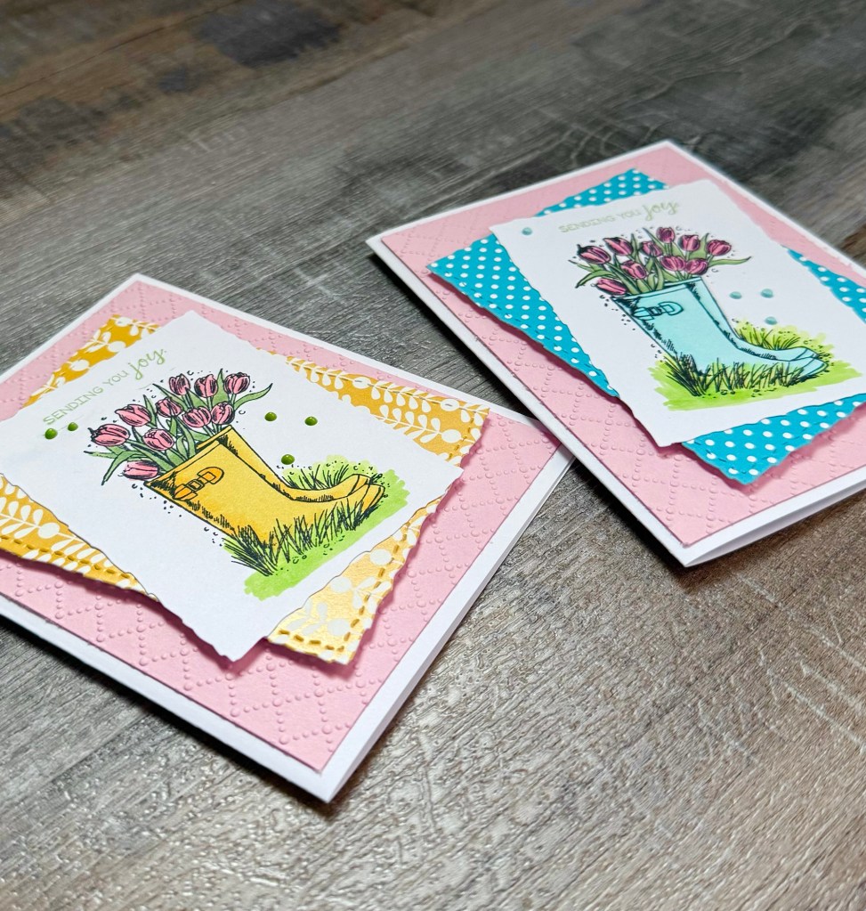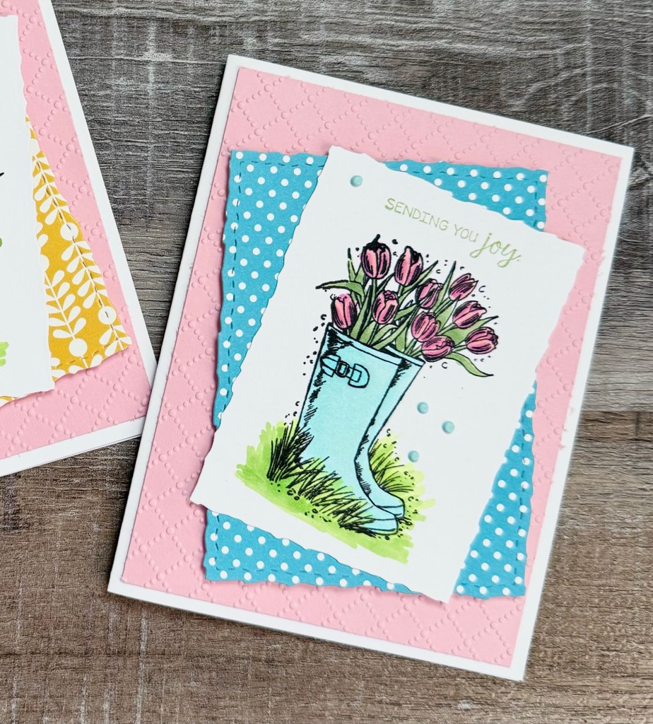 This stamp set from Unity Stamp Company is called Joy and Brighter Days. I love the tulips and how Spring-y this stamp is with the rain boots.