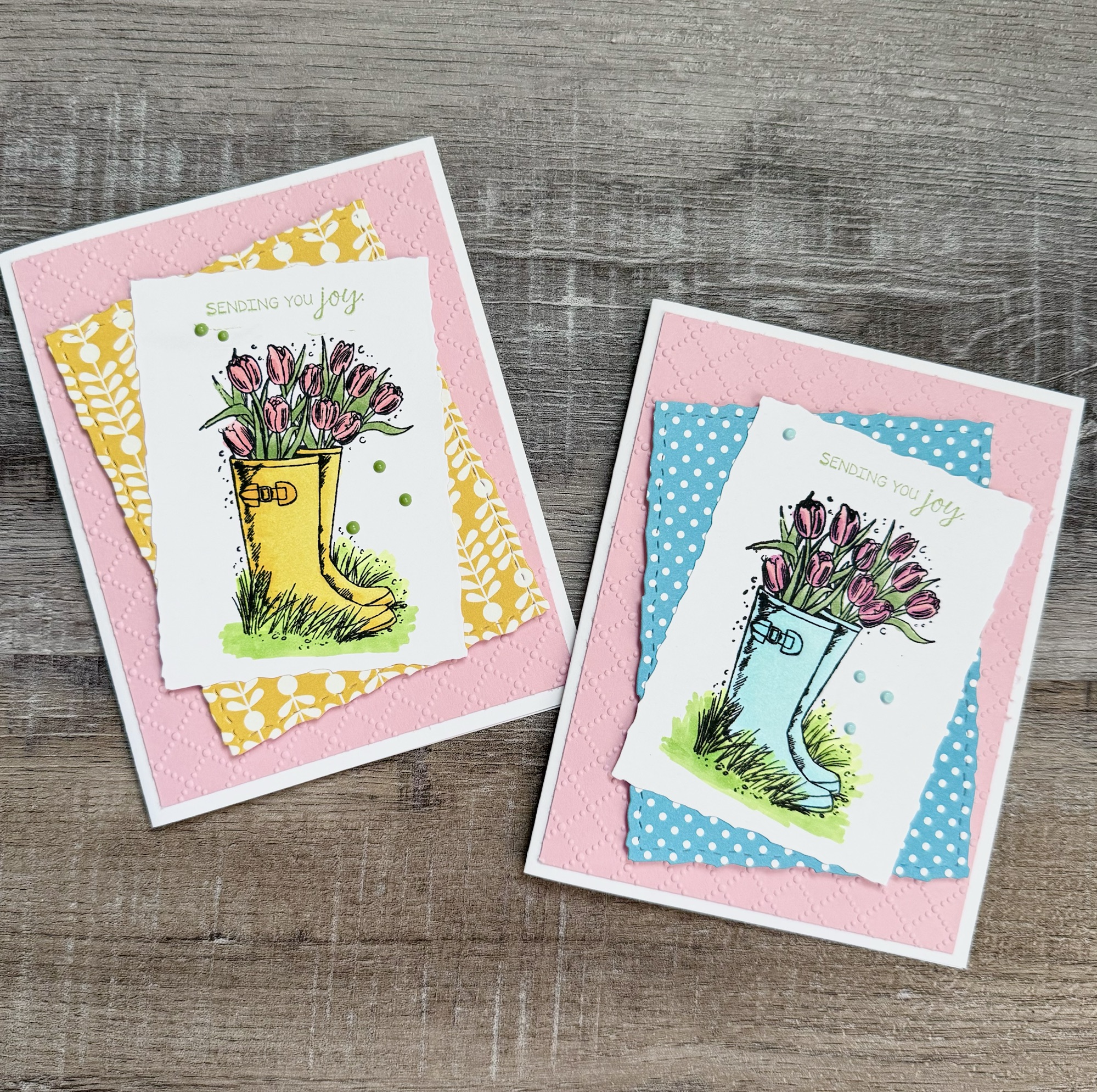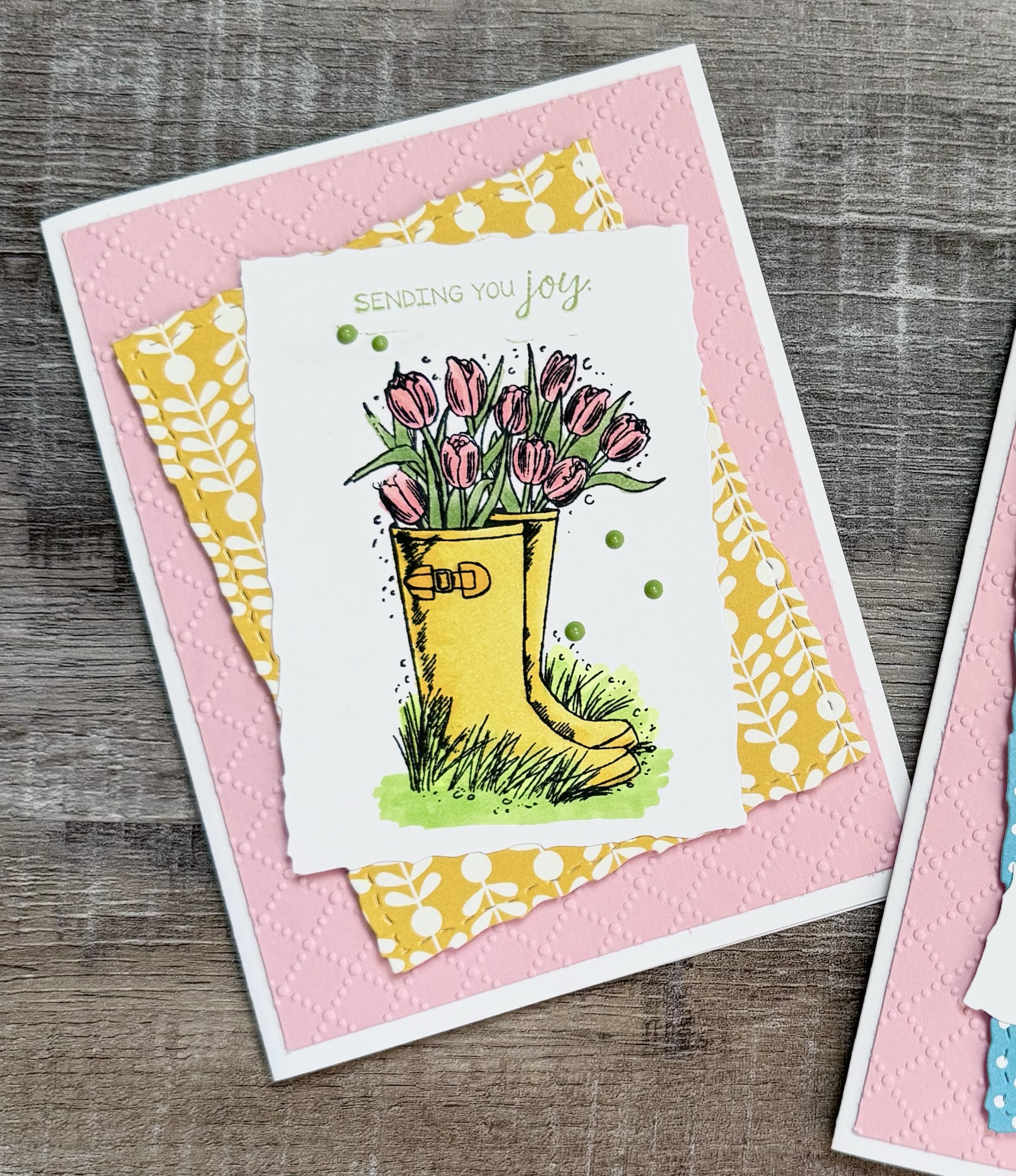 This stamp set from Unity Stamp Company is called Joy and Brighter Days. I love the tulips and how Spring-y this stamp is with the rain boots.