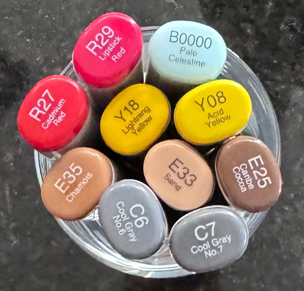 I stamped Mickey, the balloon, and the birthday cake with Memento Tuxedo Black ink on white card stock. I colored the images with Copic markers – you can see the colors I used in the photo below.
