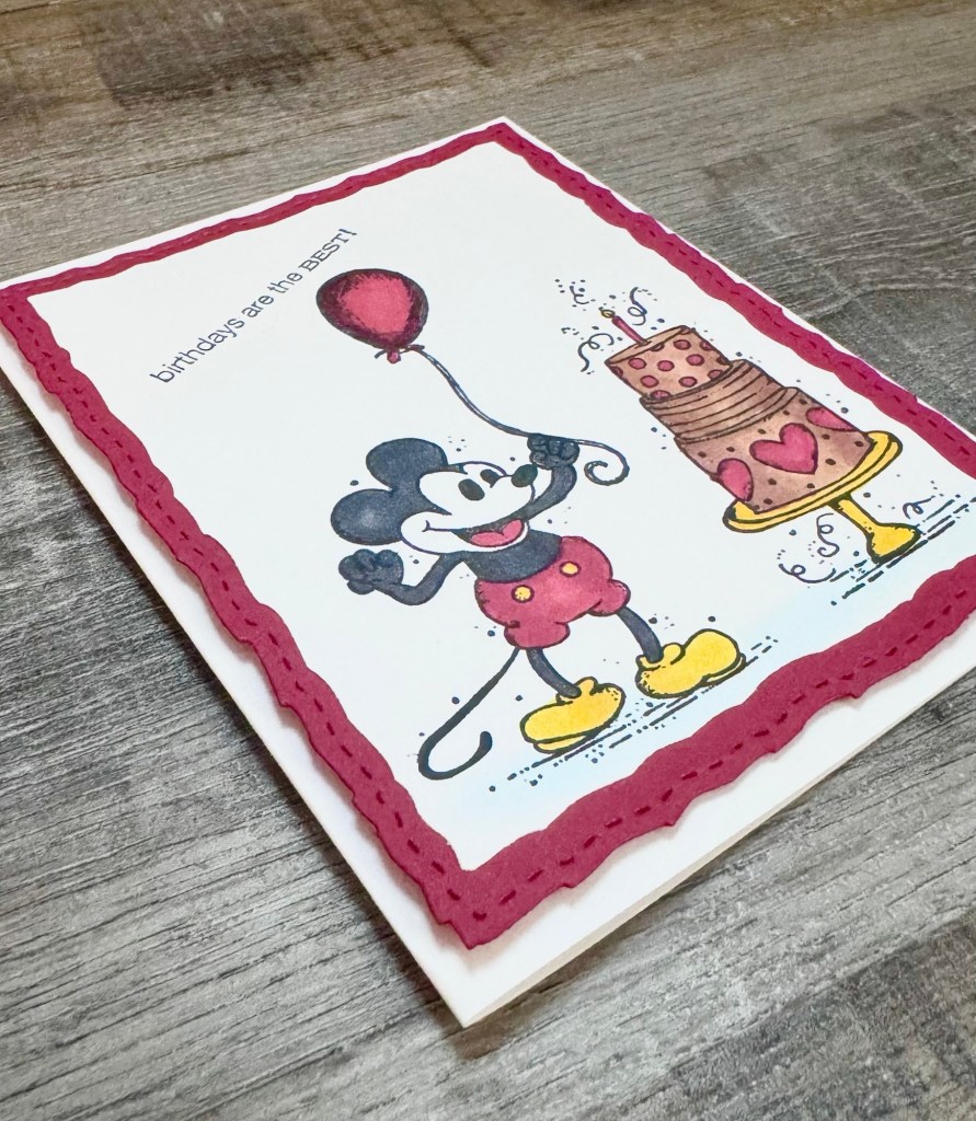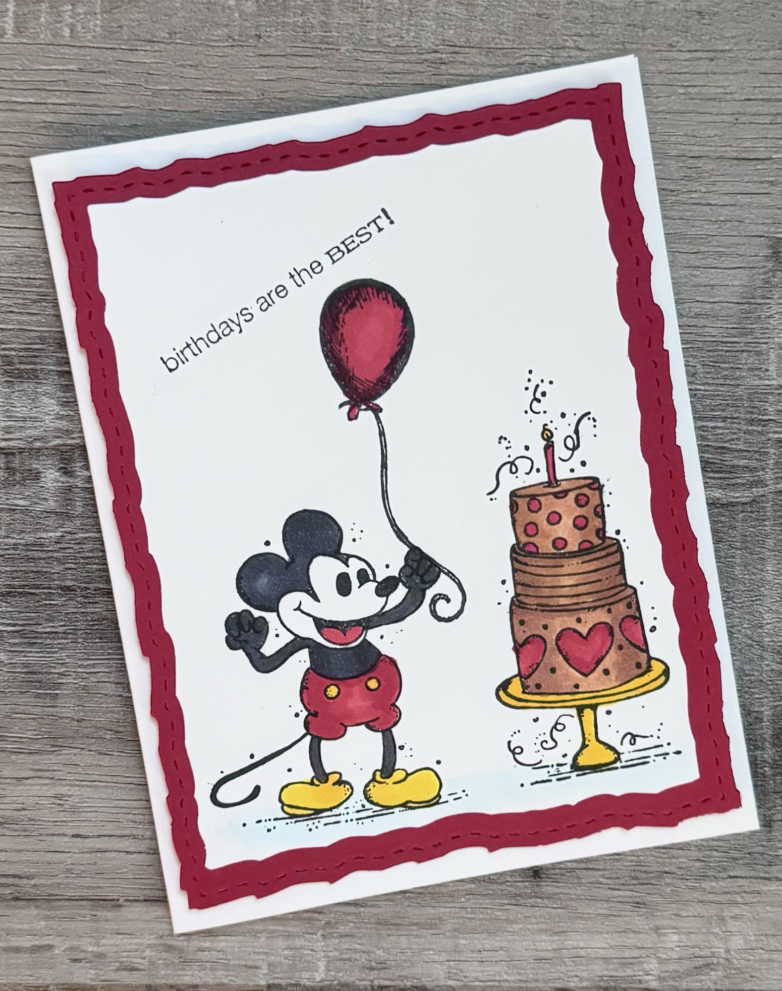 How fun is this stamp set from Unity Stamp Company?!?! This great classic Mickey Mouse set is called Mousing Around: Mouse Party Palooza and it makes the best birthday card. 🎈