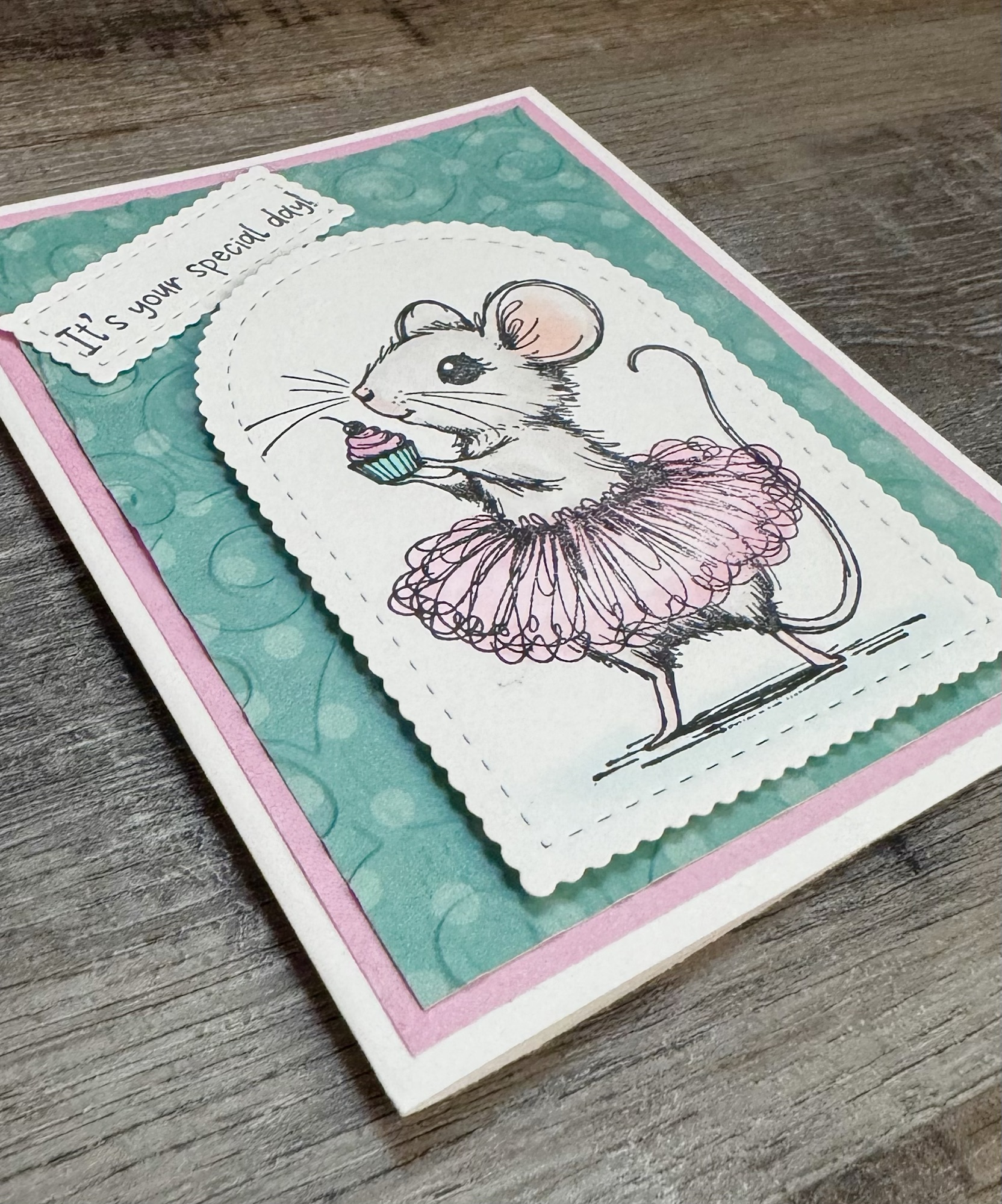 So much cuteness! This little mouse in her tiny tutu is so adorable! Such a sweet way to wish someone a Happy Birthday. 🧁