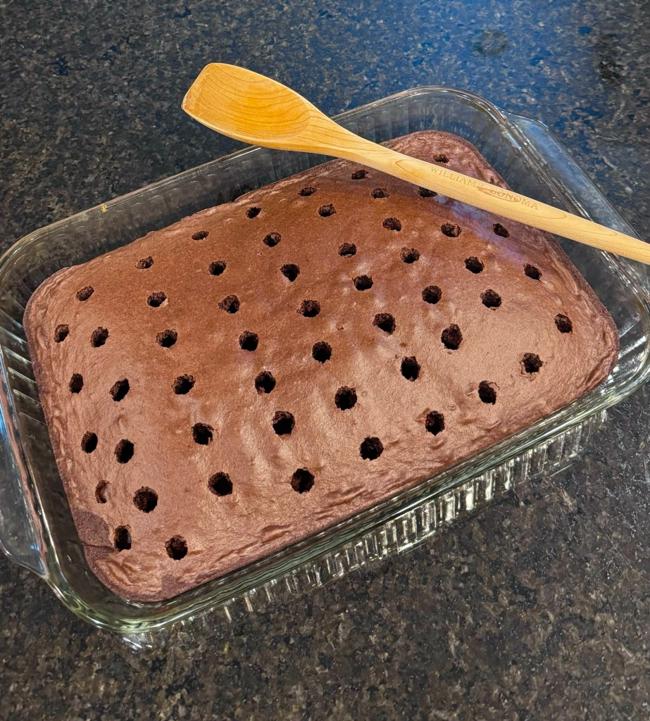 Since I took the cake to our potluck, I wasn’t able to get a picture of a piece cut from it. But it seemed to be a hit. 😊