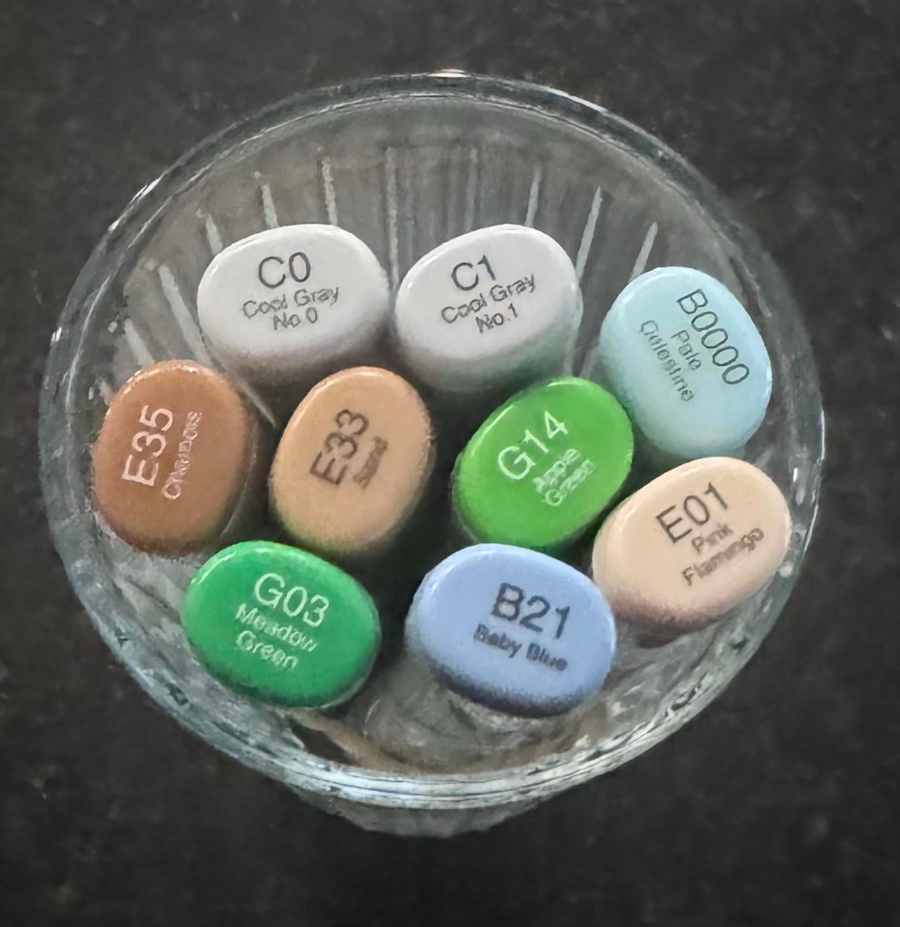 I stamped the images with Memento Tuxedo Black ink on white card stock and colored them with Copic markers. You can see the colors I used in the photos below.