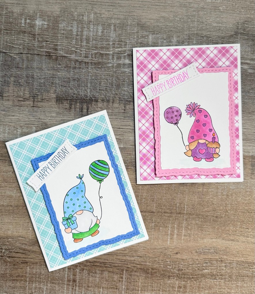 I made simple cards using both the boy and girl gnomes that are great to send to any of the little ones in your life – or anyone who loves gnomes!