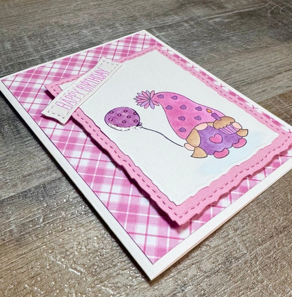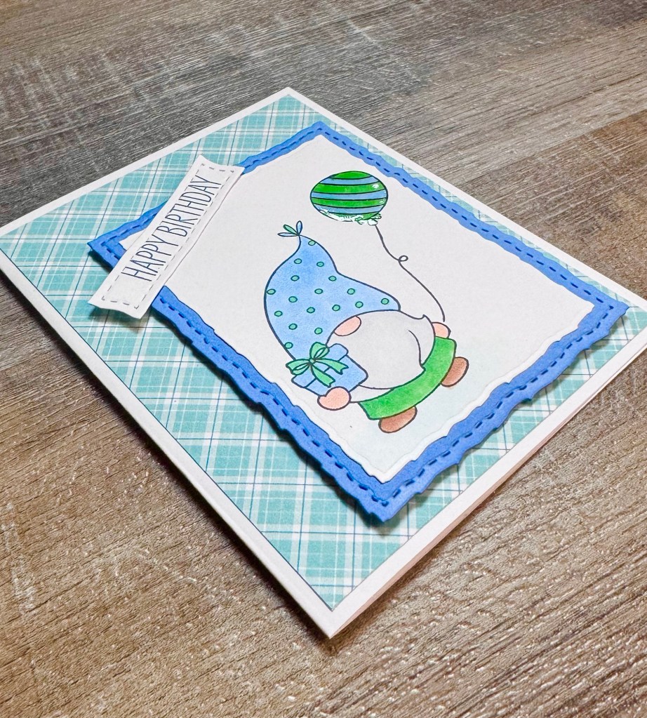 I found this cute Gnome Birthday clear stamp set on clearance at Hobby Lobby and knew it needed to come home with me! 😊 It seems to be discontinued from Spellbinders ☹️, but you can easily change the stamp to any fun birthday image in your collection to make a similar card.