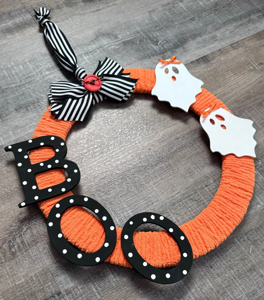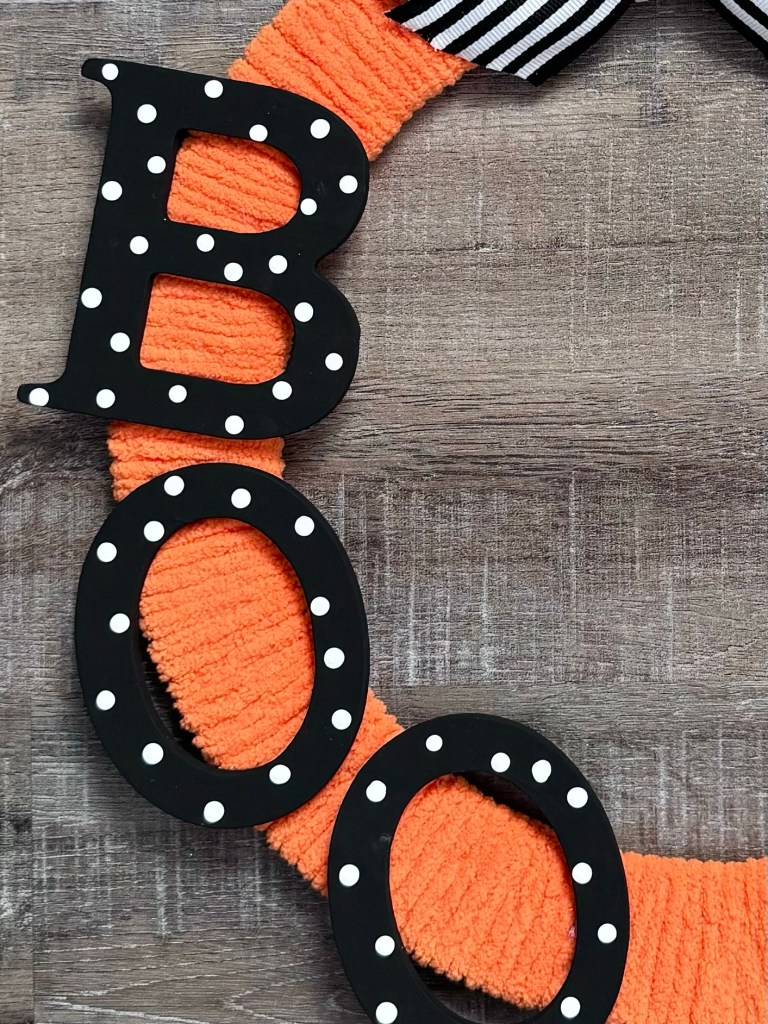 I have a fun BOO Wreath to share with you today. 👻 It’s super easy to make and will look so cute on your front door!