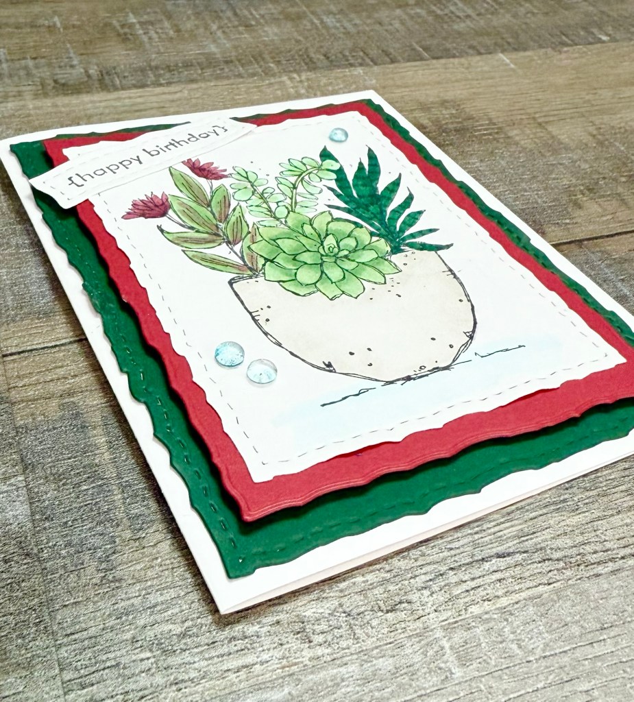 This Succulent Greetings stamp from Unity Stamp Company makes a beautiful card. The image measures 3 by 3.5 inches and can be used for so many different occasions.