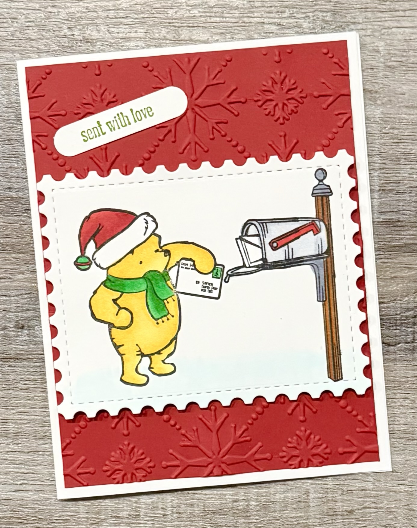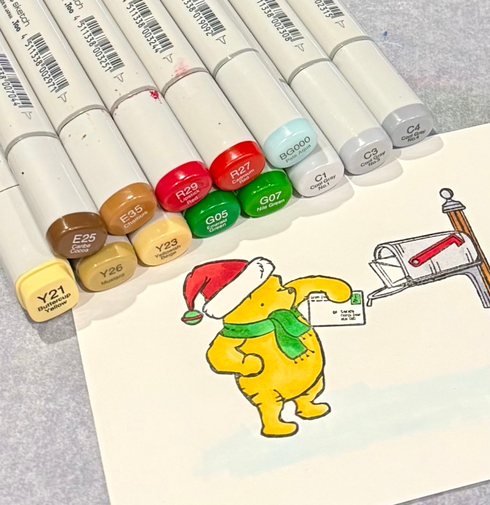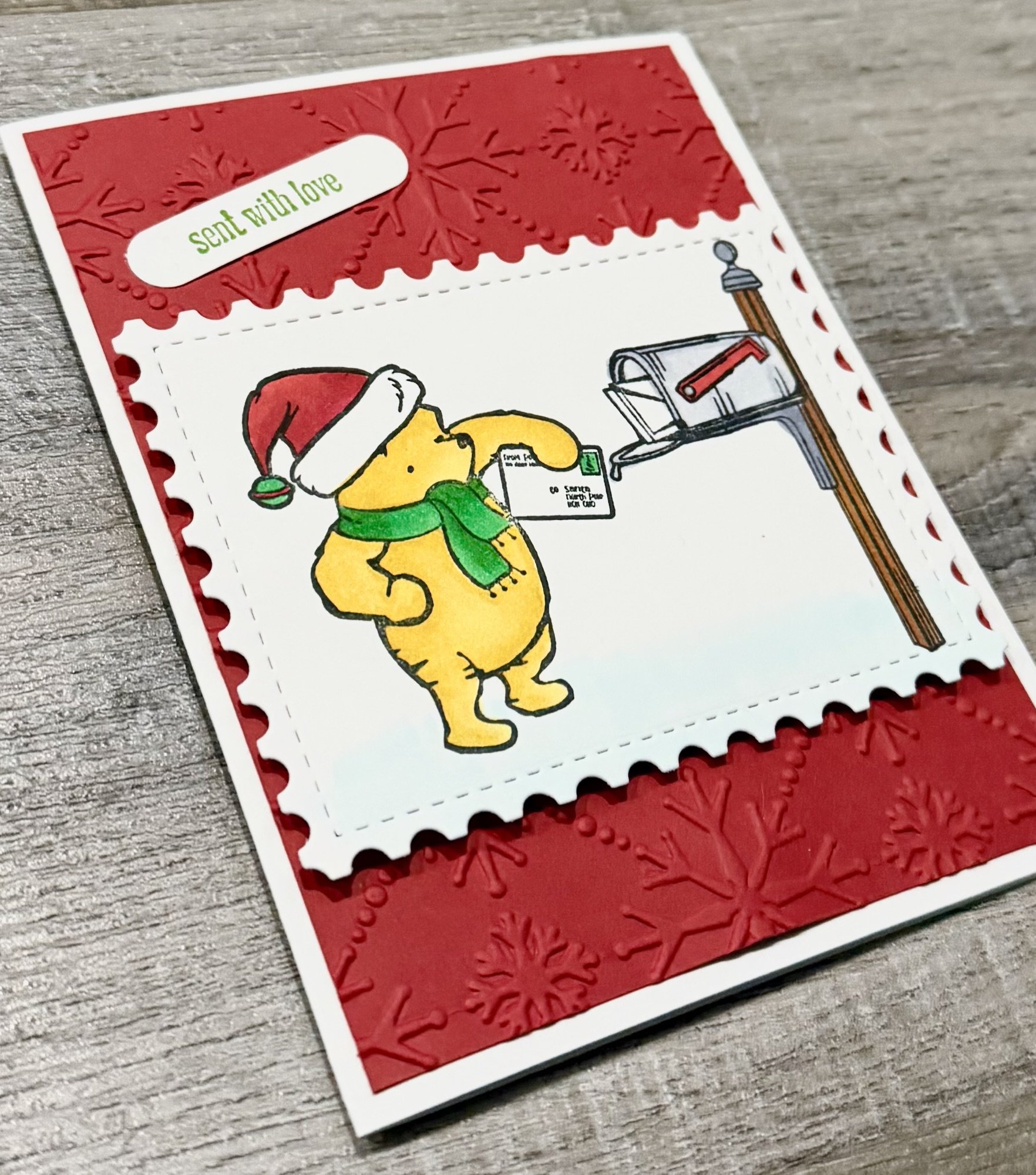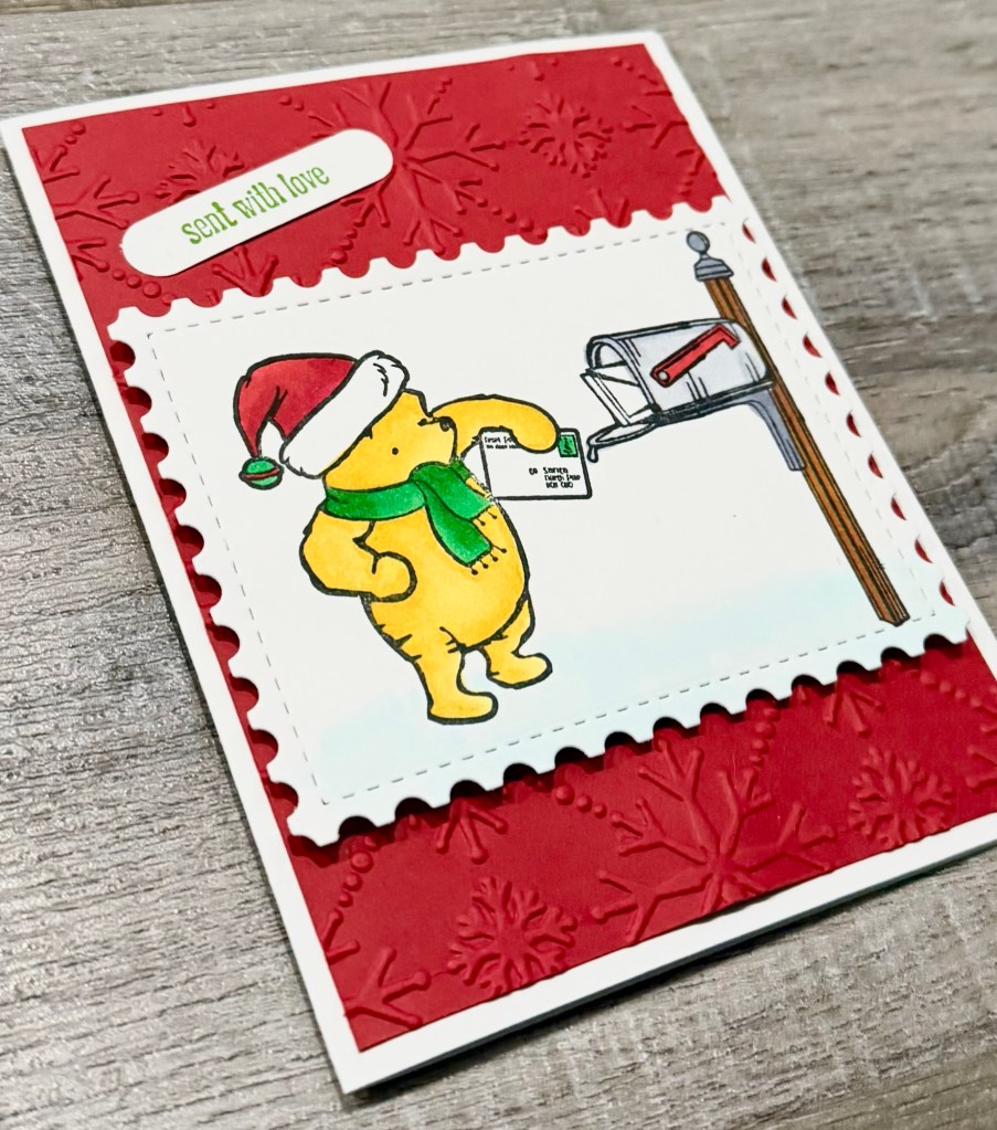 Making monthly Christmas cards continues at Creating Me with this sweet Pooh image. This is my 3rd or 4th year of creating a Christmas card each month and then making a few cards of that design. Itβs great to have them all made when the busy holiday season hits. π