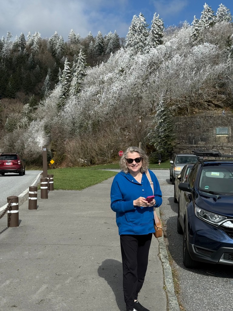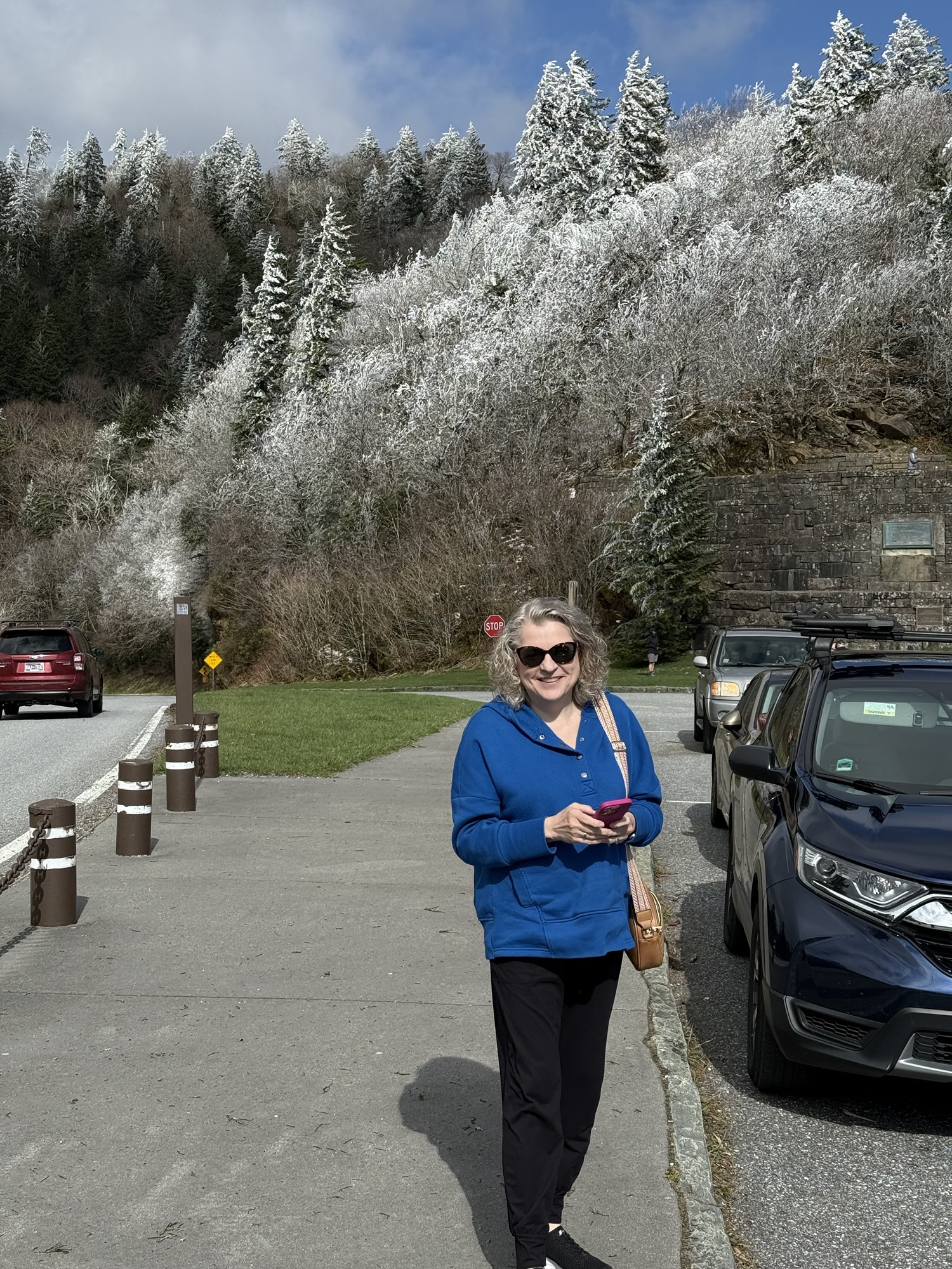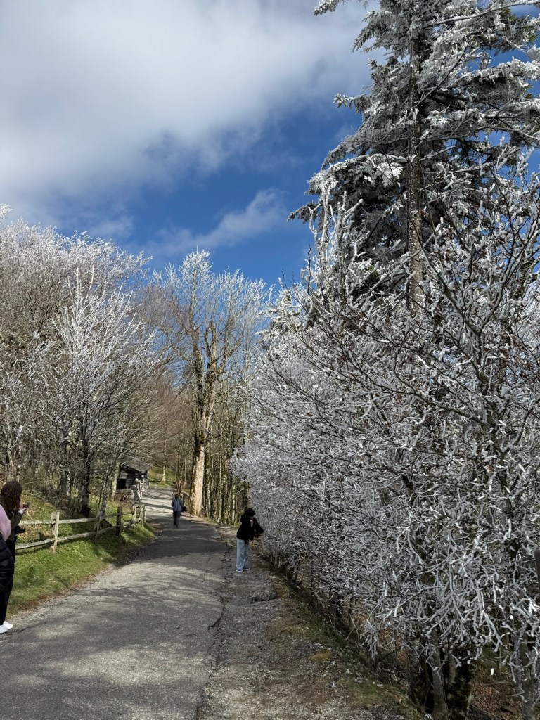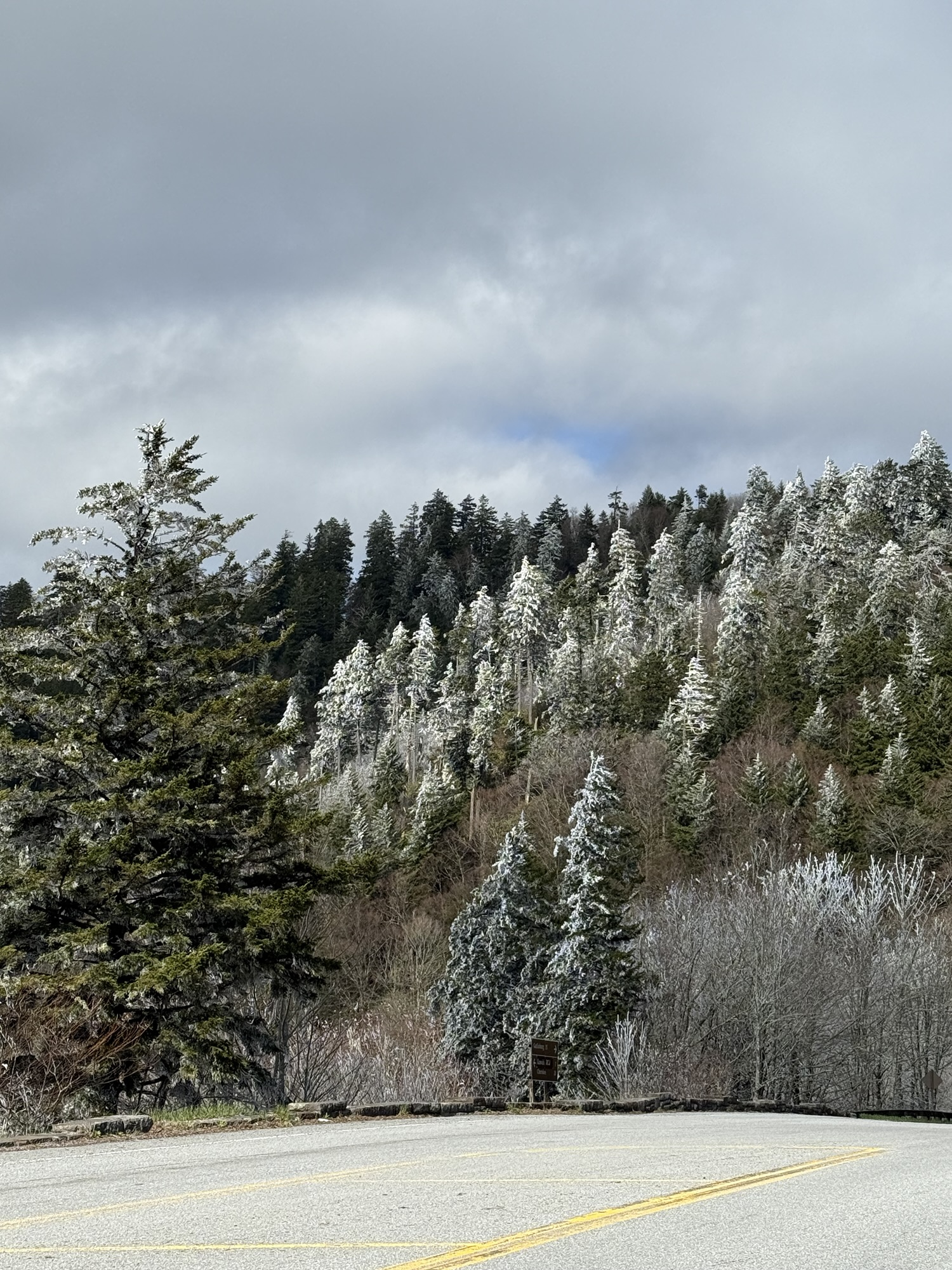 As we were rounding the bend on the winding mountain road towards Gatlinburg, we were surprised by a stunning view of the trees still covered in snow! It was quite a surprising sight to see and thankfully there was a parking area that we (and everyone else) were able to pull into. I snapped a few photos because it was so beautiful. The photos really don’t do justice to the scene. The temperature on the mountain was about 40 degrees that day so I’m sure the snow didn’t last too much longer, but what an unexpected treat to see it!
