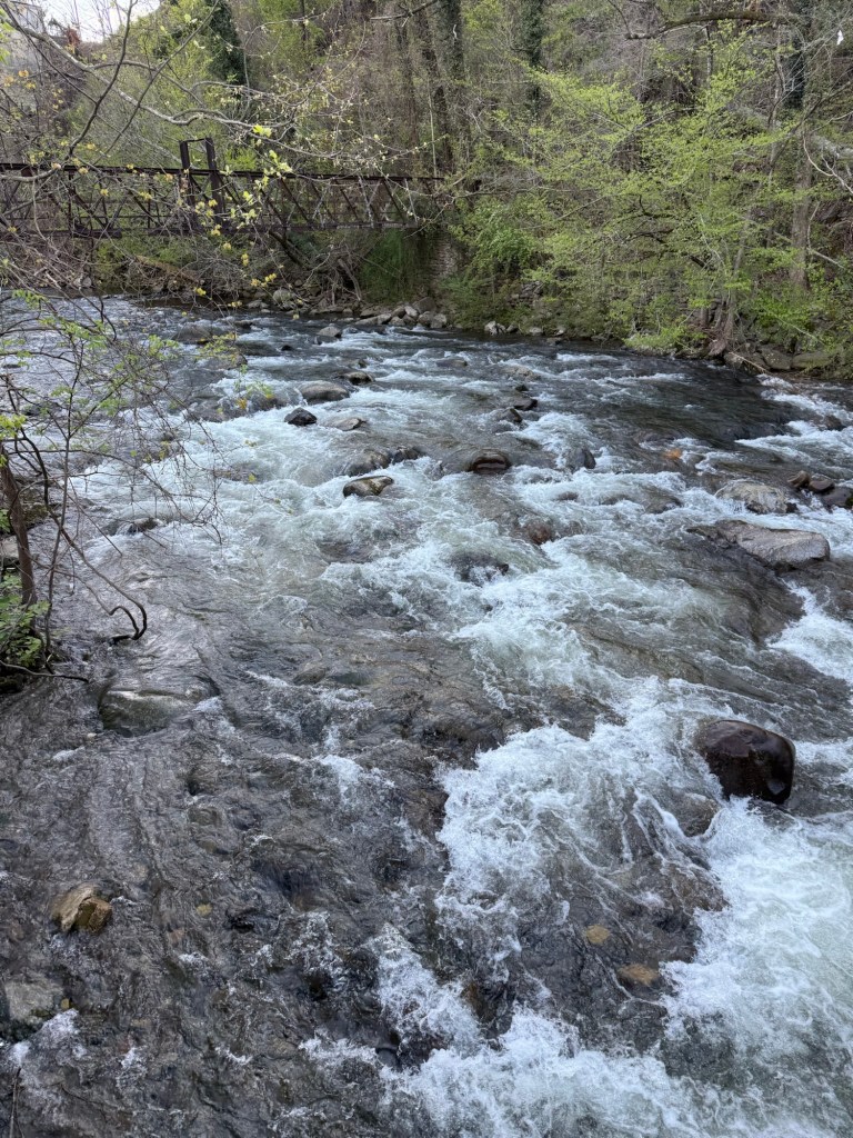 We took a short drive into Great Smoky Mountains National Park along a beautiful winding road to visit Daisy Town. Daisy Town is called the birth place of tourism in the Smokies. The quiet road has a number of preserved vacation homes built between 1910 and 1935. You can’t rent them out, but they are fun to wander into. The area was originally a logging camp until 1925 when the logging industry here ended. This was a favorite vacation spot for the wealthier people of mainly Knoxville, TN until the Great Smoky Mountains National Park was established in 1934. You can find a little more info here and here if you’re interested.