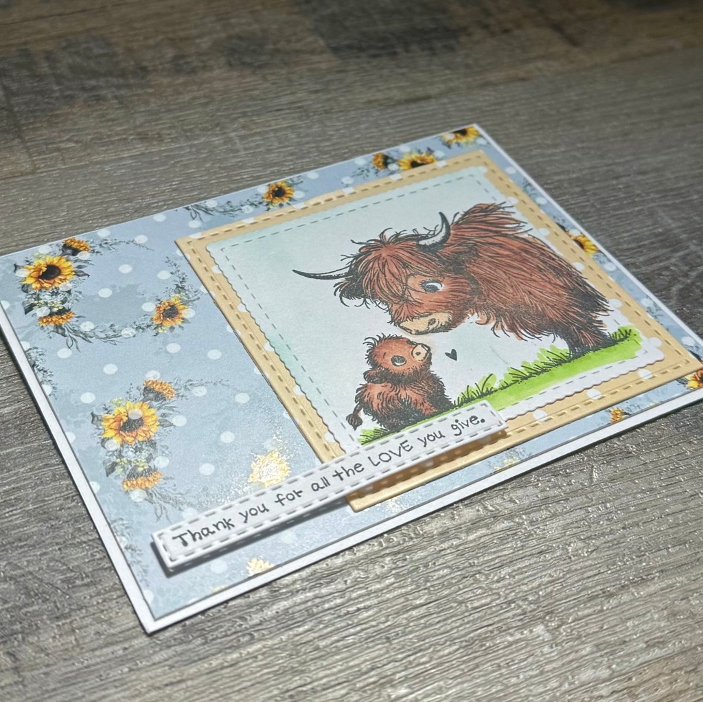 Oh My Goodness! How adorable is this Highland Cow mama and baby stamp?!?! The stamp set is called from Forever Rooted and it’s from Unity Stamp Company.