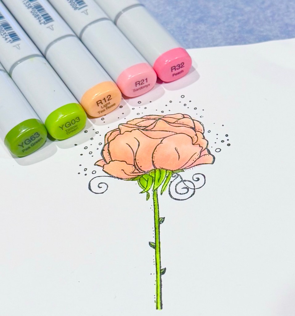 The rose stamp is from the Prefer to Smile stamp set from Unity Stamp Company. Unfortunately the set is no longer available. Any simple flower stamp in your collection would work great on this layout.