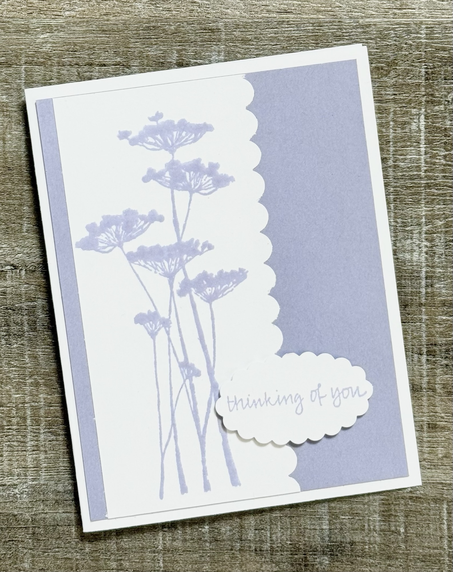 My flower silhouette stamp is from a discontinued set called Insightful Meadows from Unity Stamp Company. This set called Serene Silhouettes has several stamps that would work beautifully on a card like this. My sentiment stamp is one I’ve had in my collection forever.
