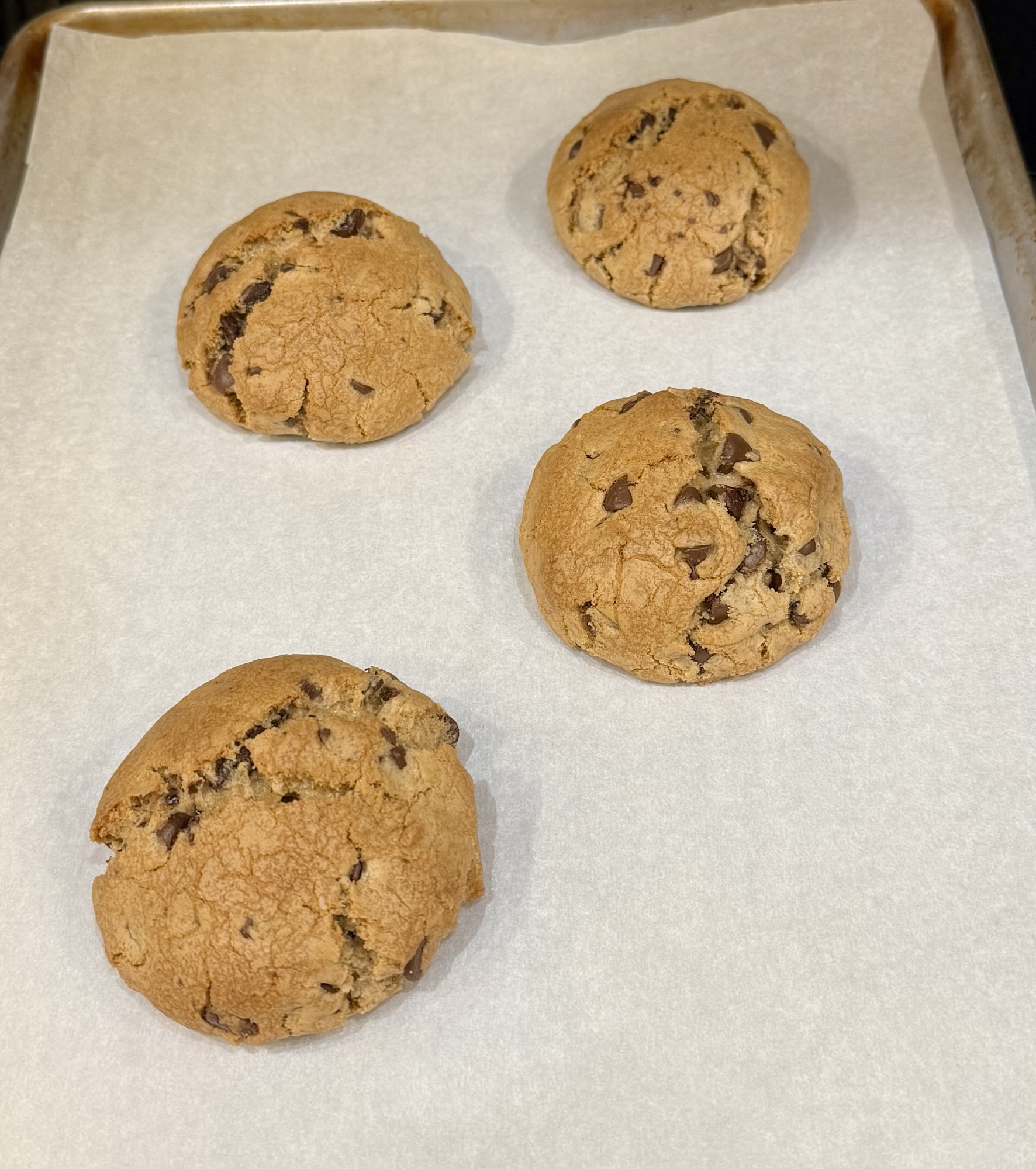 The first recipe he made are the NYC Chocolate Chip Cookies that we enjoyed so much in Scotland. The recipe makes 8 huge cookies!
