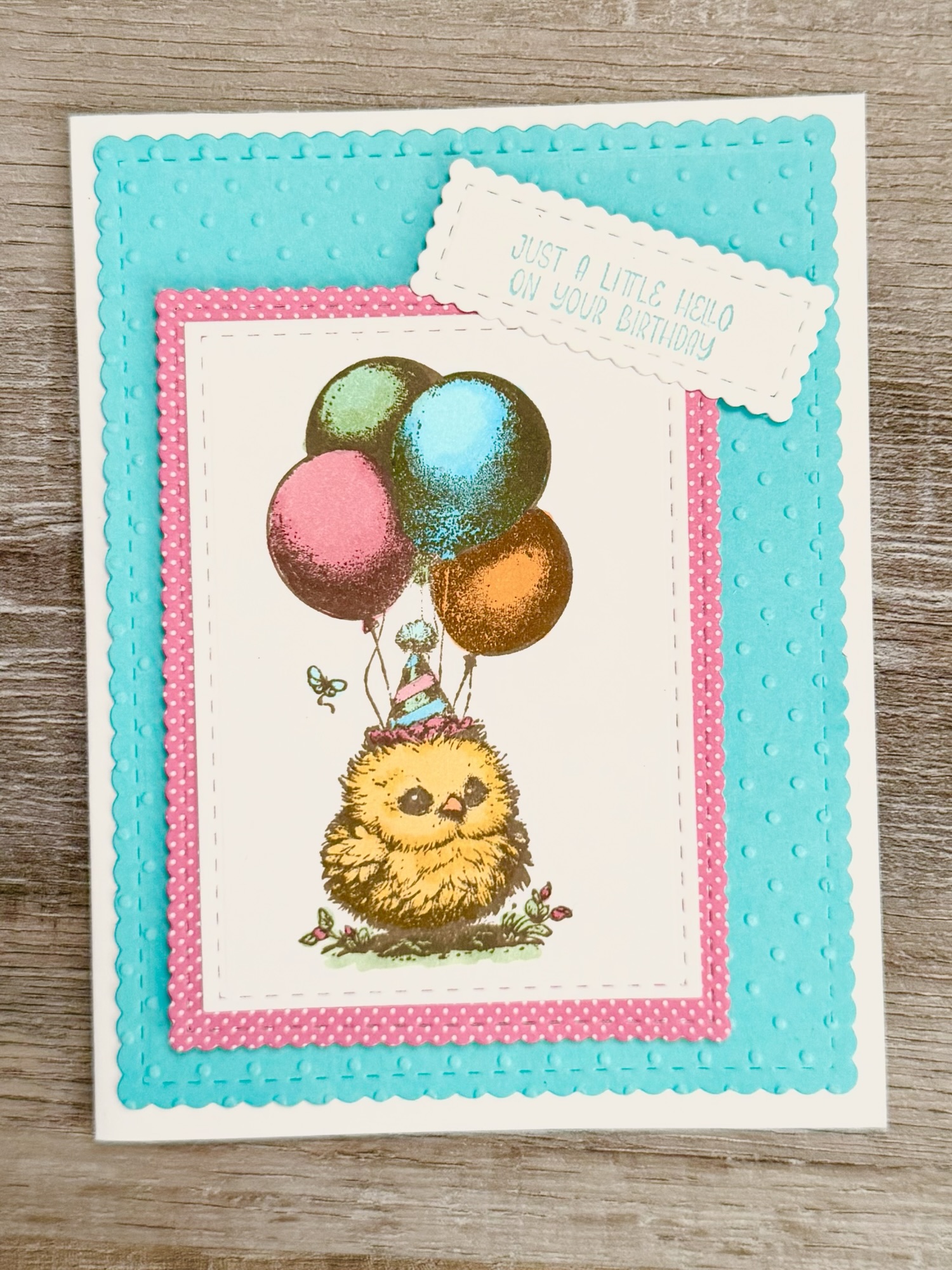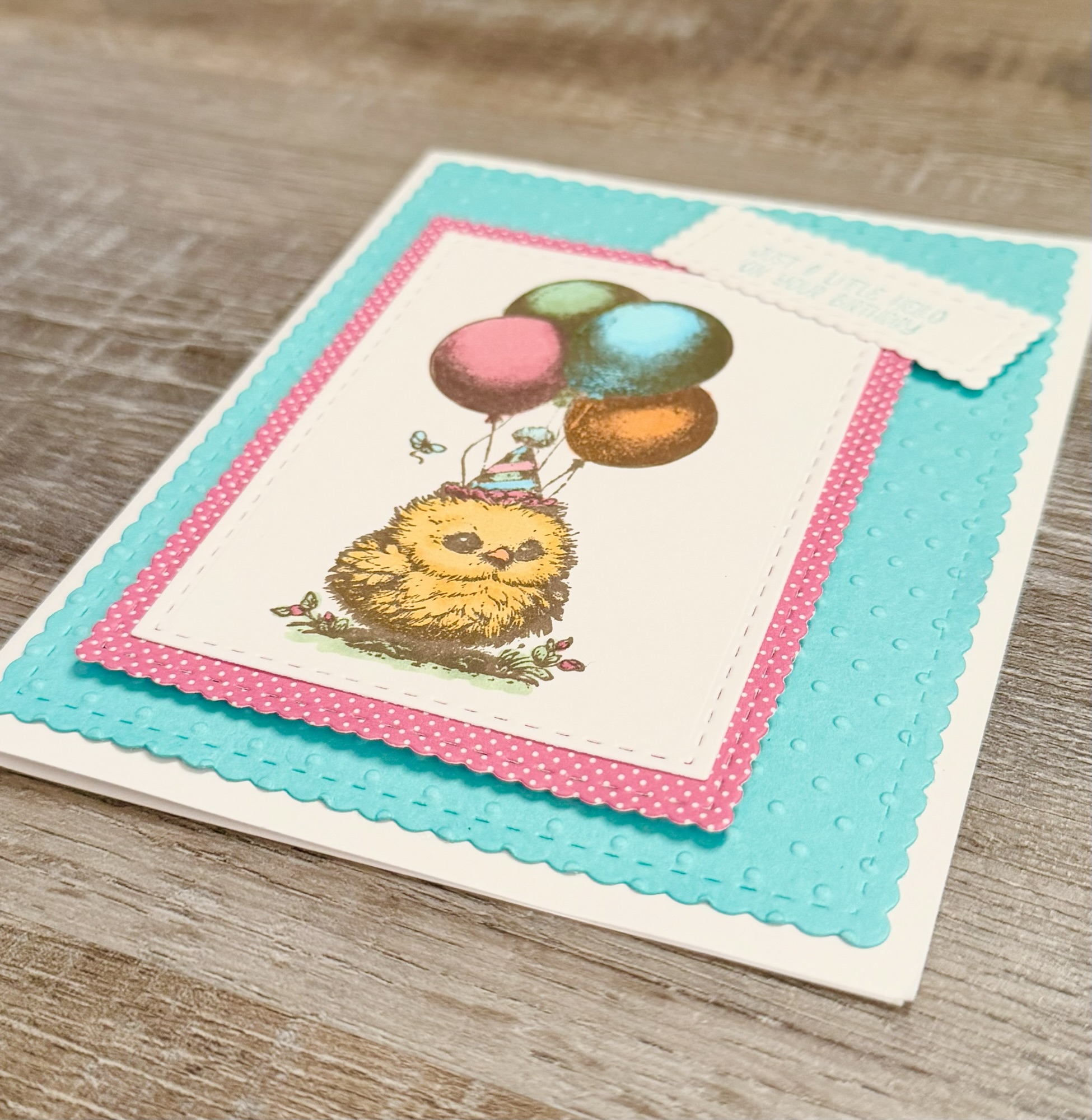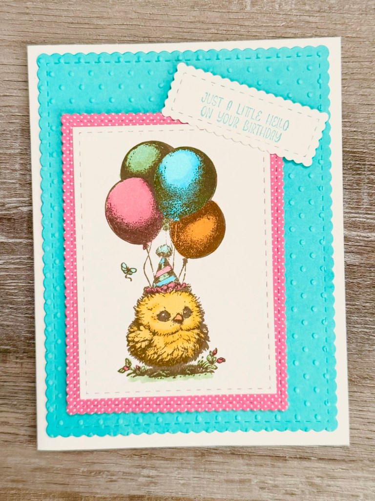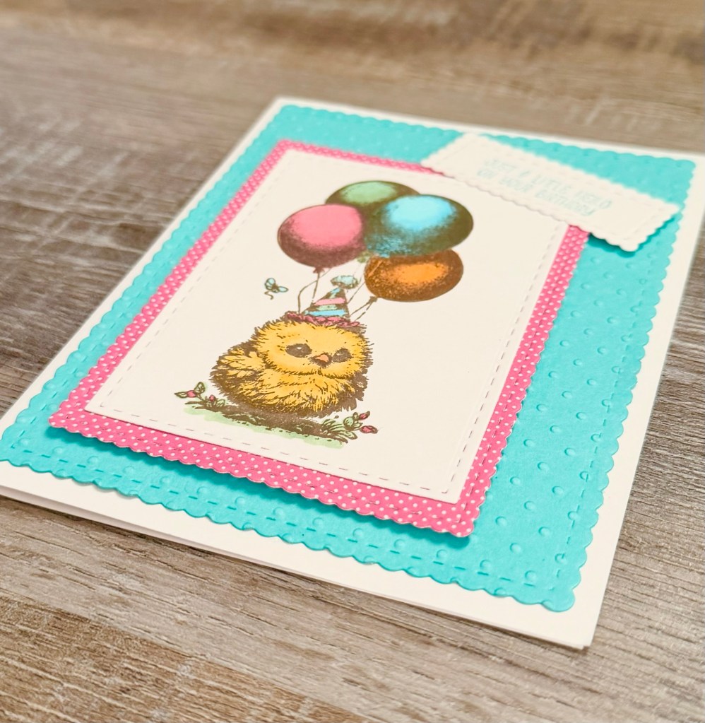 This cute little Birthday Chick is from the stamp set called Bitty Birthday Bash from Unity Stamp Company. She makes the sweetest birthday card!