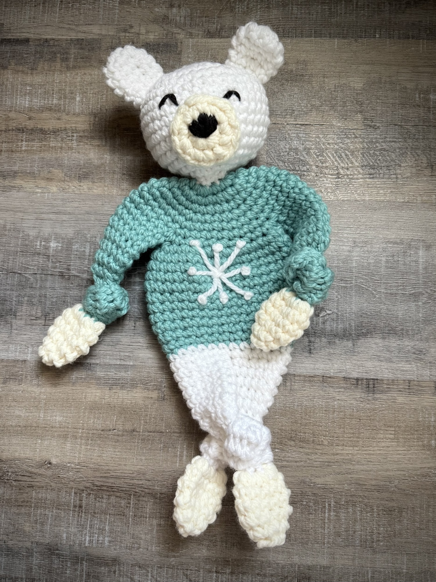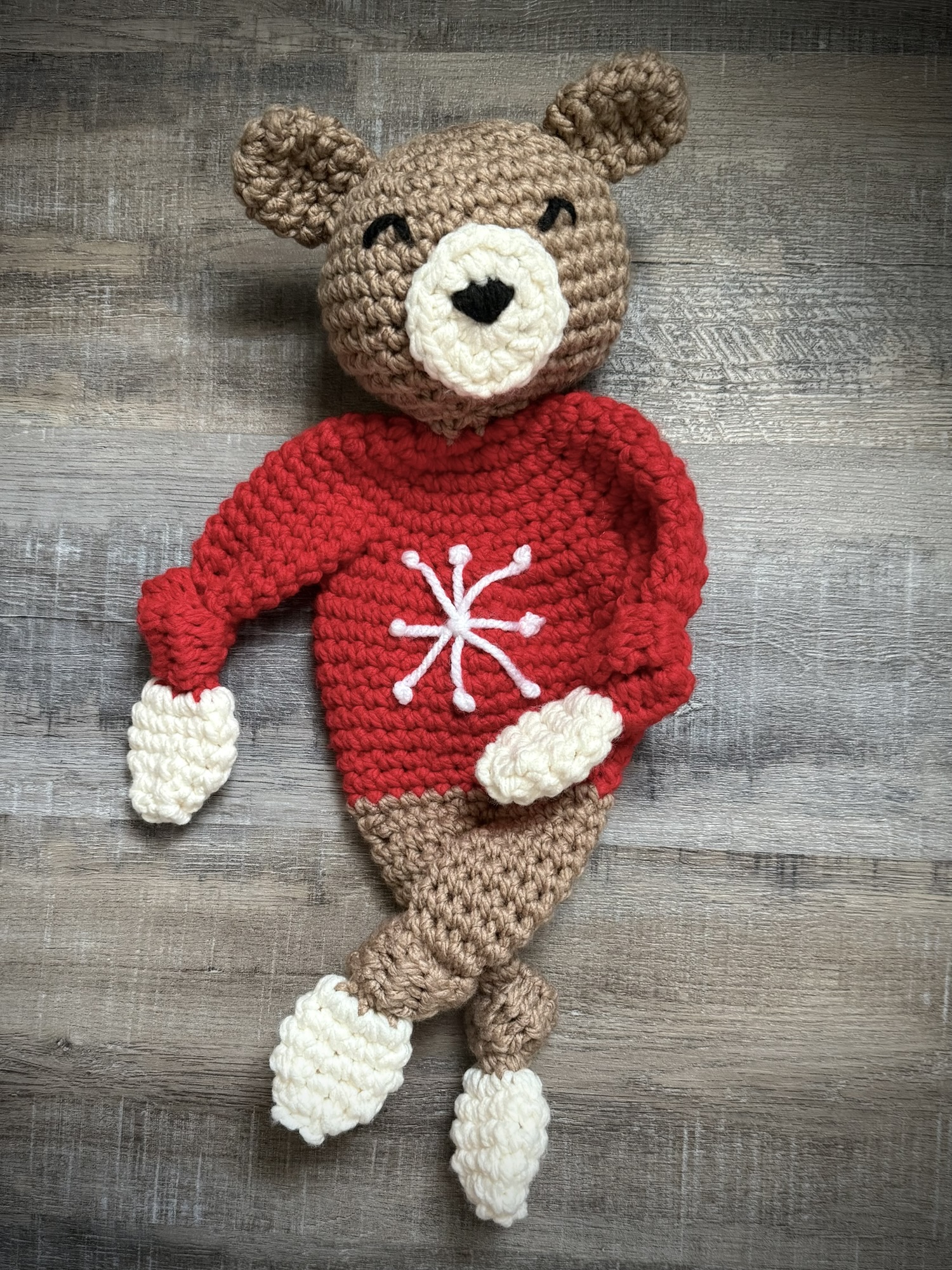 The bears are stitched up with chunky yarn so they work up quickly. I did the snowflakes slightly different from the pattern. I added French knots on the ends of them. Other than that I followed the pattern as written.