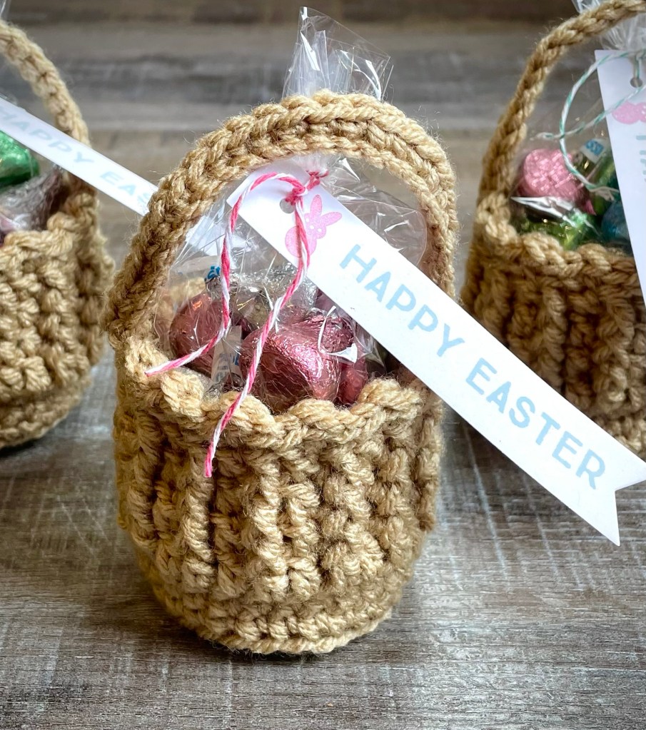 Here’s the link to the pattern for the Treat-Size Crochet Easter Basket in the photo above. Unfortunately, the supplies I used to make the little tags are no longer available. ☹️ You could easily create something similar using supplies from your craft stash.