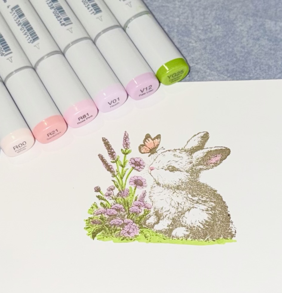 I love this little bunny! I think he has such a vintage look and with just a little added color makes a sweet Easter card.