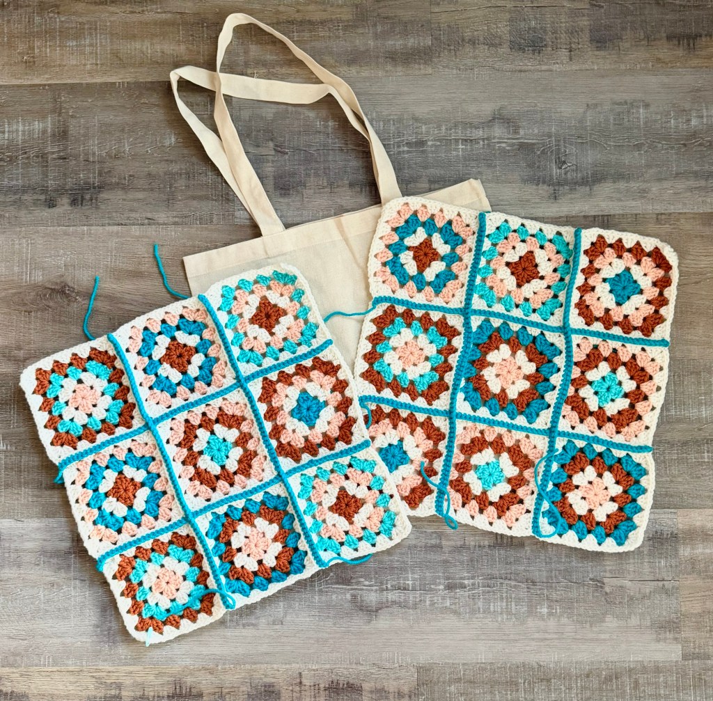 This is a cute and easy way to make a lined Crochet Granny Square Tote Bag if you’re like me and sewing isn’t one of your talents. 😉